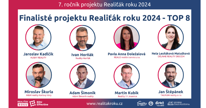 Projekt Realiťák roku opět spojuje ty nejlepší realitní makléře z celé České republiky a ukazuje, že kvalita služeb a profesionalita v oblasti realit mohou být inspirací nejen pro obor samotný, ale i pro veřejnost. V letošním, již 7. ročníku, se do finále probojovalo osm výjimečných makléřů, kteří jsou vzorem svého oboru. Pojďme si je představit!