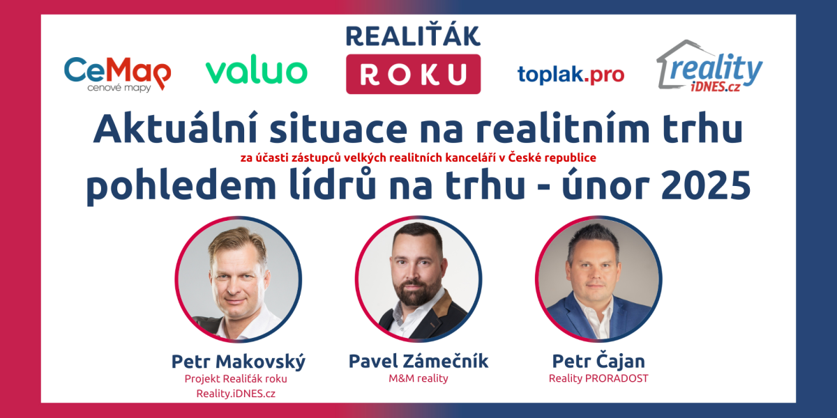 Dobrý den, dámy a pánové, vítám vás u našeho únorového čísla aktuální situace na realitním trhu pohledem lídrů na trhu. Mám tady dneska u sebe dva hosty, protože jeden odjel ještě na hory. To znamená, budeme tady dneska jenom ve třech. Pánové, vítám Pavla Zámečníka z M&M reality. Ahoj Pavle.