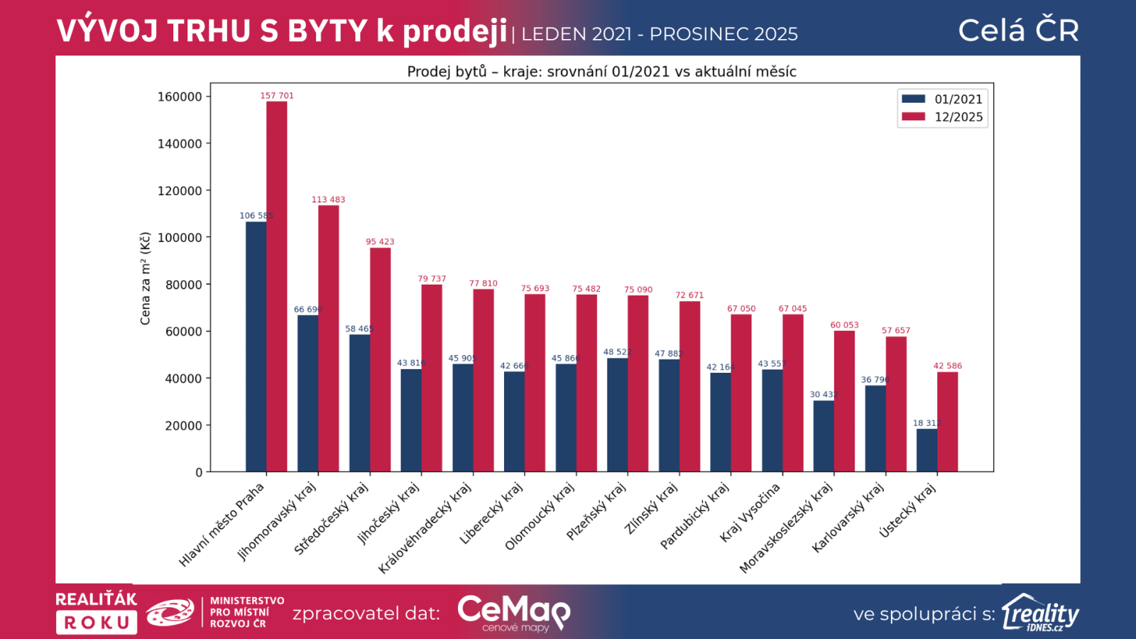 Ústecký kraj: +27,76 % (12/2025: 42 586 Kč/m²)