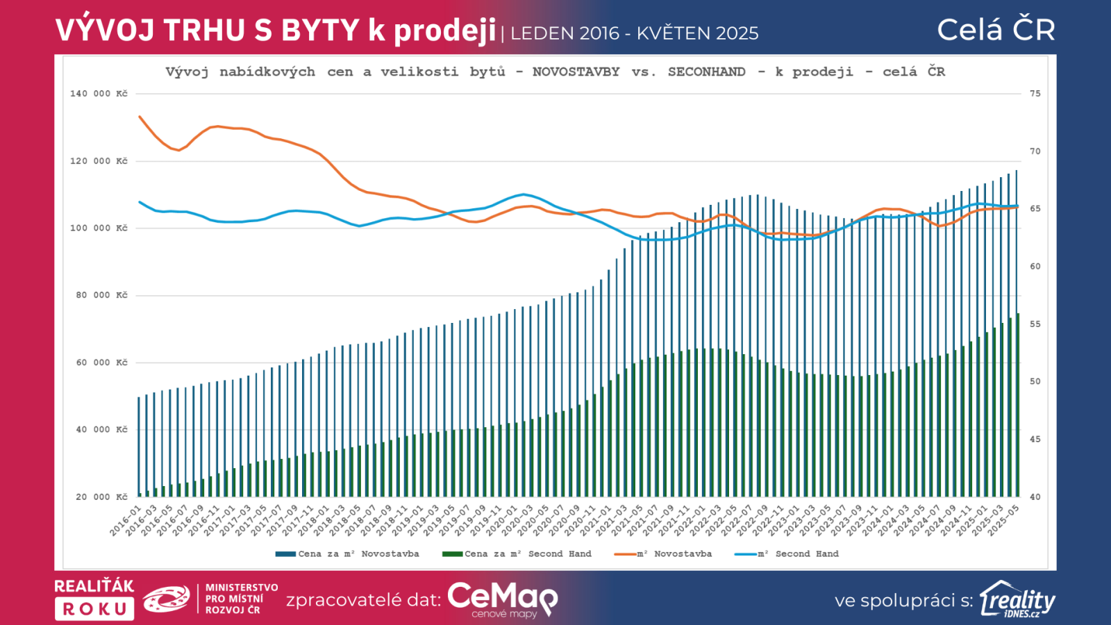 Český realitní trh v dekádě proměn: Od boomu k oživení (2016-2025) - Novostavby vs. seconhand