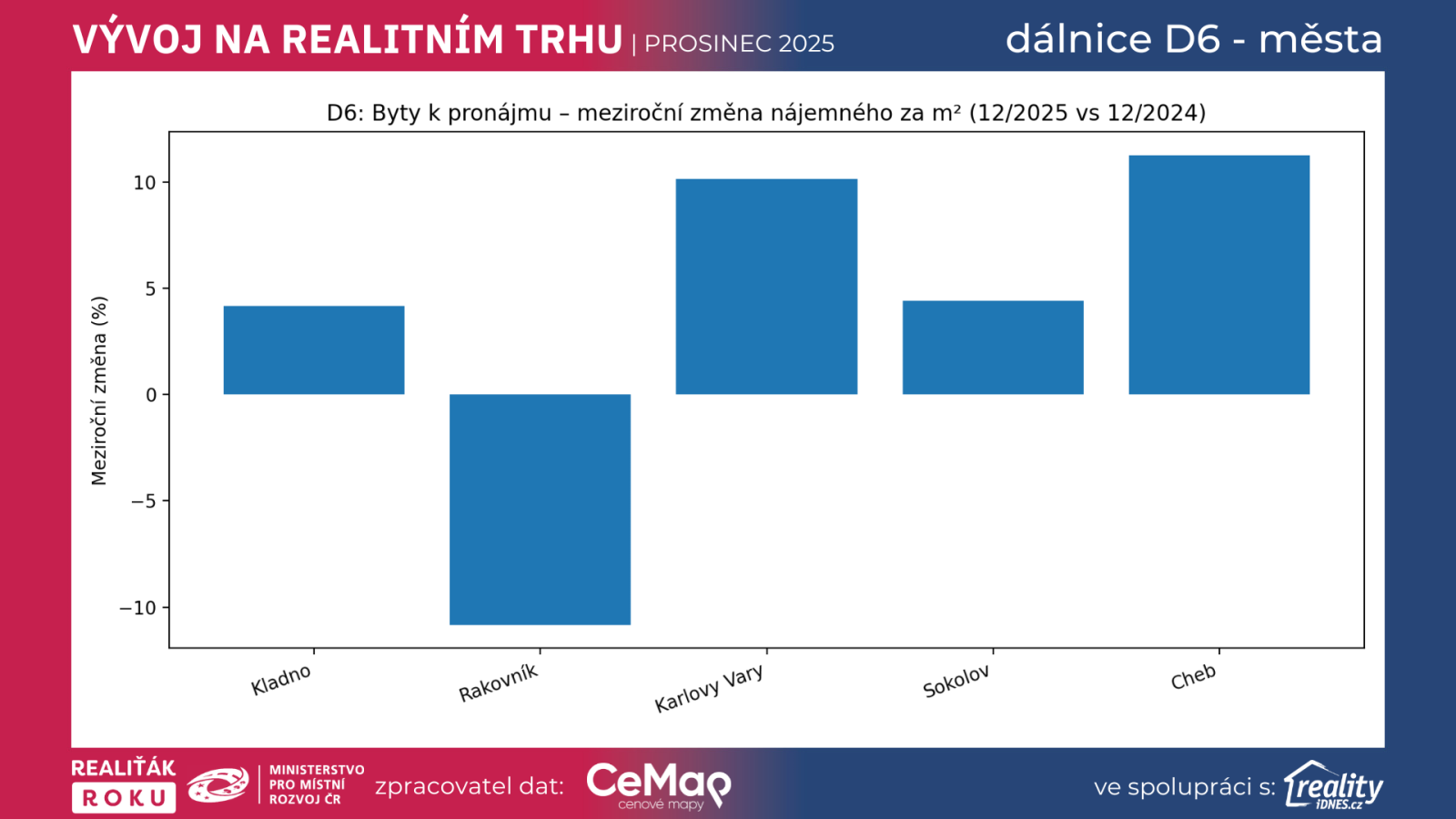 Prosincová data potvrzují, že koridor D6 se chová jako samostatná realitní osa. U bytů vidíme růst cen i zrychlení prodejů, u rodinných domů silné rozdíly mezi městy a u nájmů trvalý tlak, který je citlivý na nabídku. V takových obdobích roste význam profesionálního přístupu – správné cenotvorby, kvalitní prezentace, bezpečného procesu a férových podmínek. A právě to je dlouhodobý smysl projektu Realiťák roku: posouvat standardy, aby se realitní trh stal pro veřejnost srozumitelnější a bezpečnější.