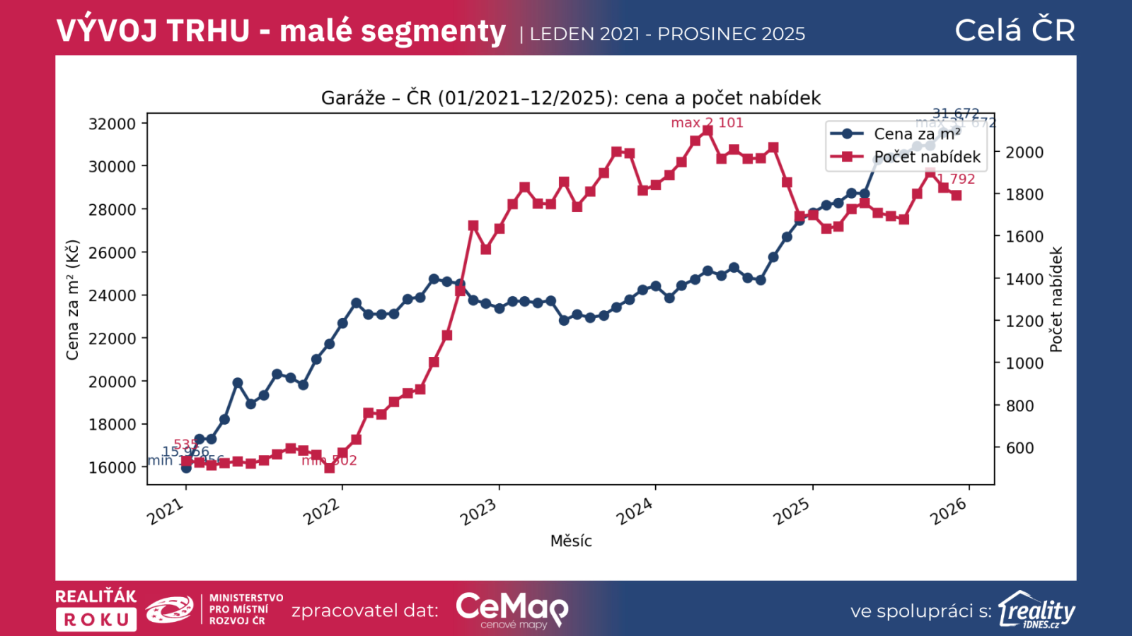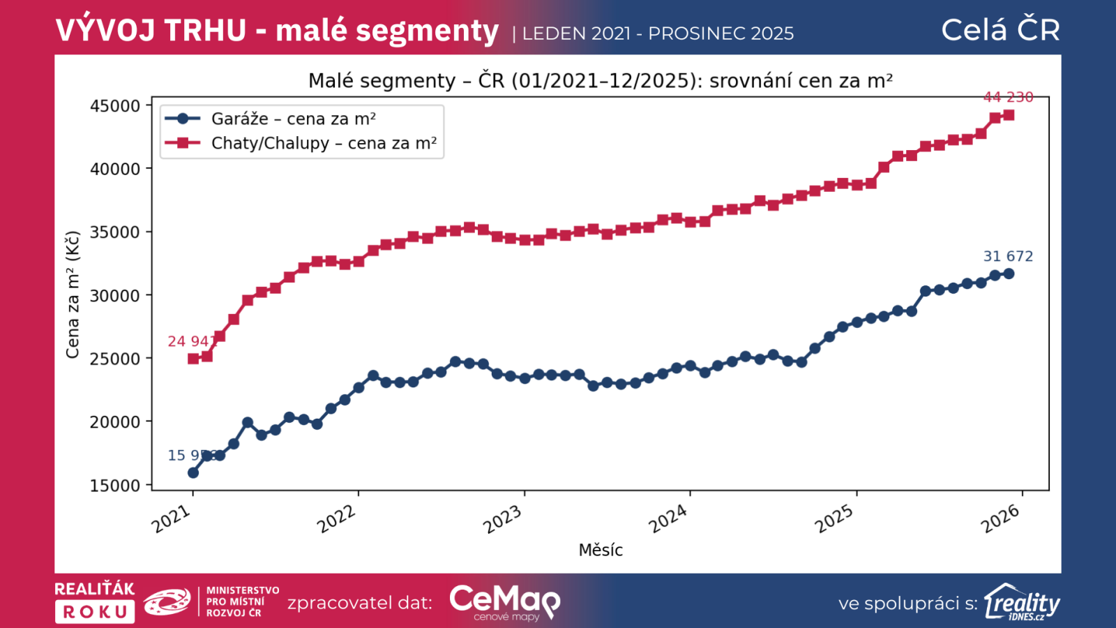 Grafy a data jsou ověřené exkluzivní data projektu Realiťák roku ve spolupráci CEMAP - cenové mapy a portálu Reality.iDNES.cz spolu s Ministerstvem pro místní rozvoj