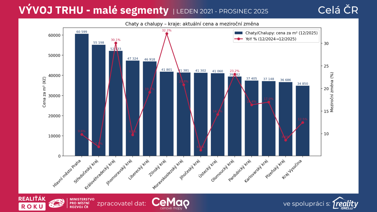 Kraj Vysočina – 32 018 Kč/m² (YoY +19,44 %)
