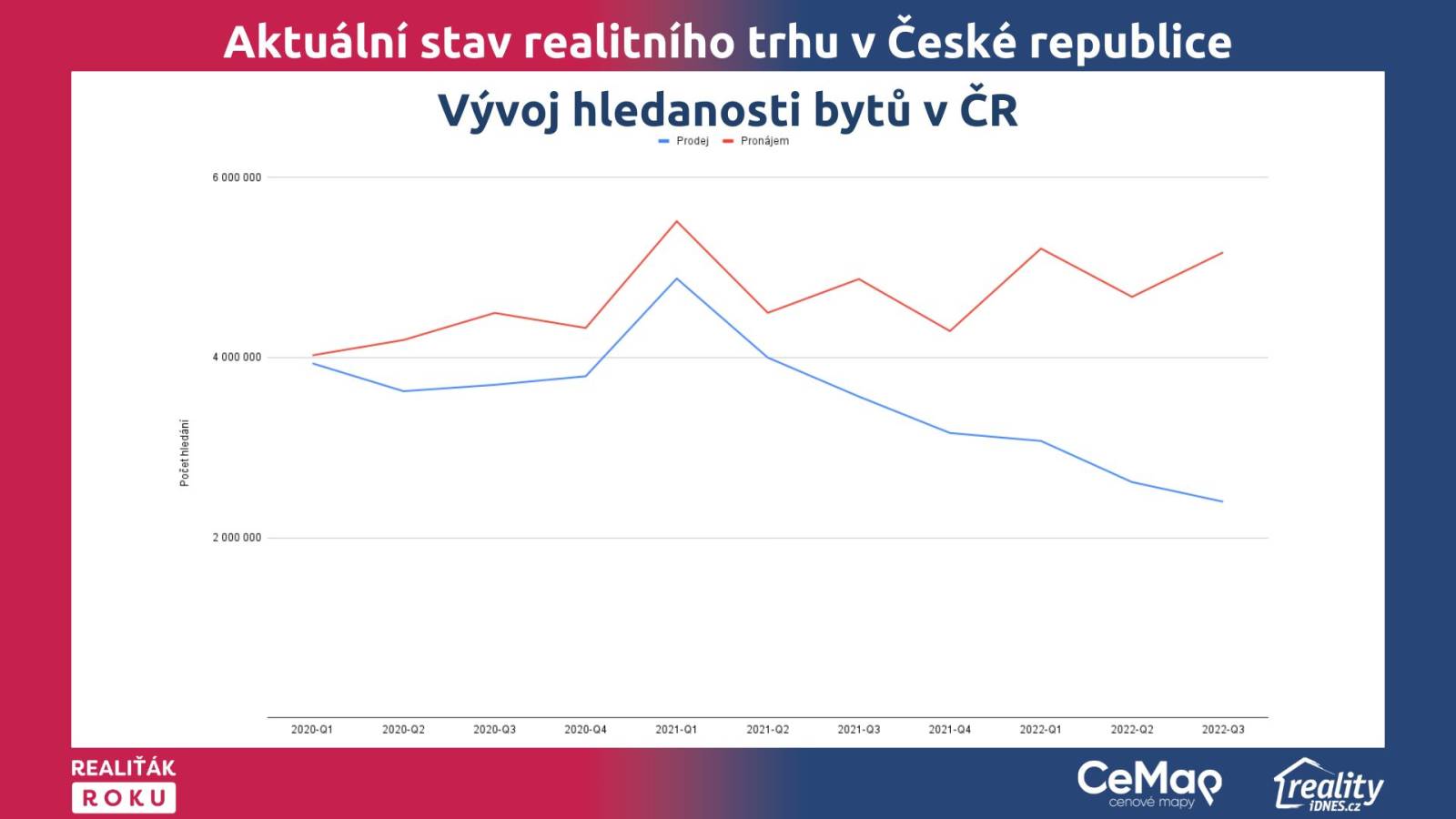 Graf č.5: Vývoj hledanosti bytů v ČR (ověřená exluzivní data projektu Realiťák roku ve spolupráci s CEMAP - cenové mapy a portálu Reality.iDNES.cz)