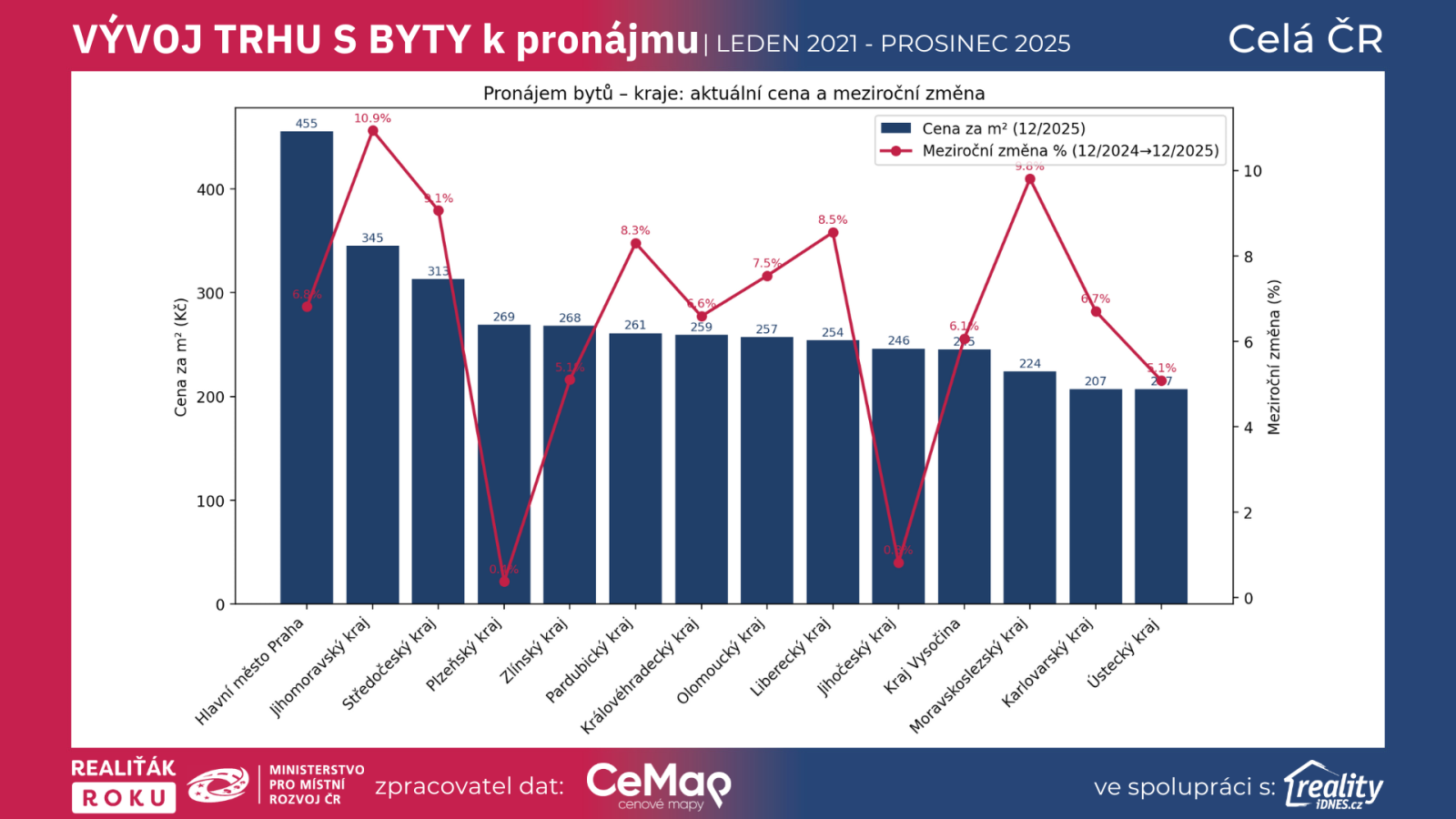 Hlavní město Praha – 455 Kč/m² (YoY +6,81 %)