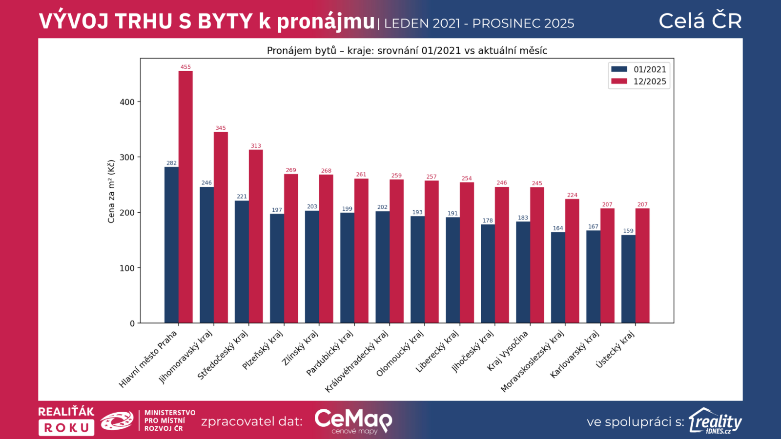 „Na krajských datech je vidět, že nájemní trh se nevyvíjí jednotně. Rozdíly v ceně i rychlosti pronájmu jsou významné – a bez práce s konkrétními měsíci a konkrétní úrovní (ČR × kraj) se dá udělat špatný závěr velmi snadno.“ - Ondřej Hon, majitel společnosti CEMAP- cenové mapy a člen poroty Realiťák roku.