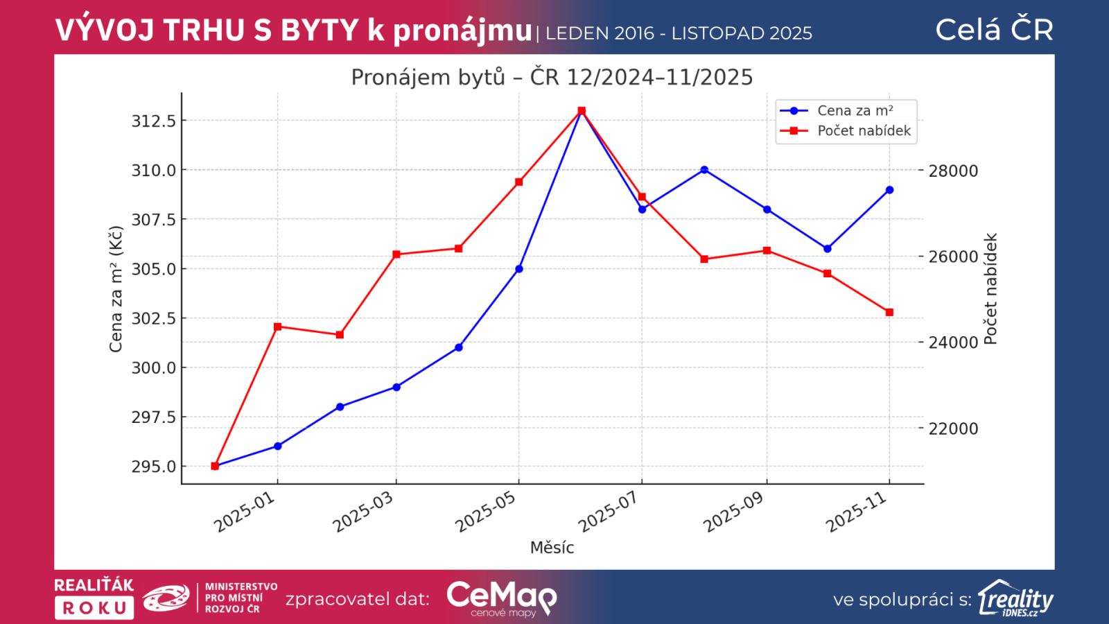 Data Reality.iDNES.cz, CEMAP - cenové mapy a projektu Realiťák roku tak potvrzují, že nájemní bydlení není jen doplňkem trhu — v roce 2025 se stává hlavním tahounem poptávky, a zároveň segmentem, ve kterém rozdíl mezi kvalitním a nekvalitním makléřem znamená pro klienta reálné peníze.