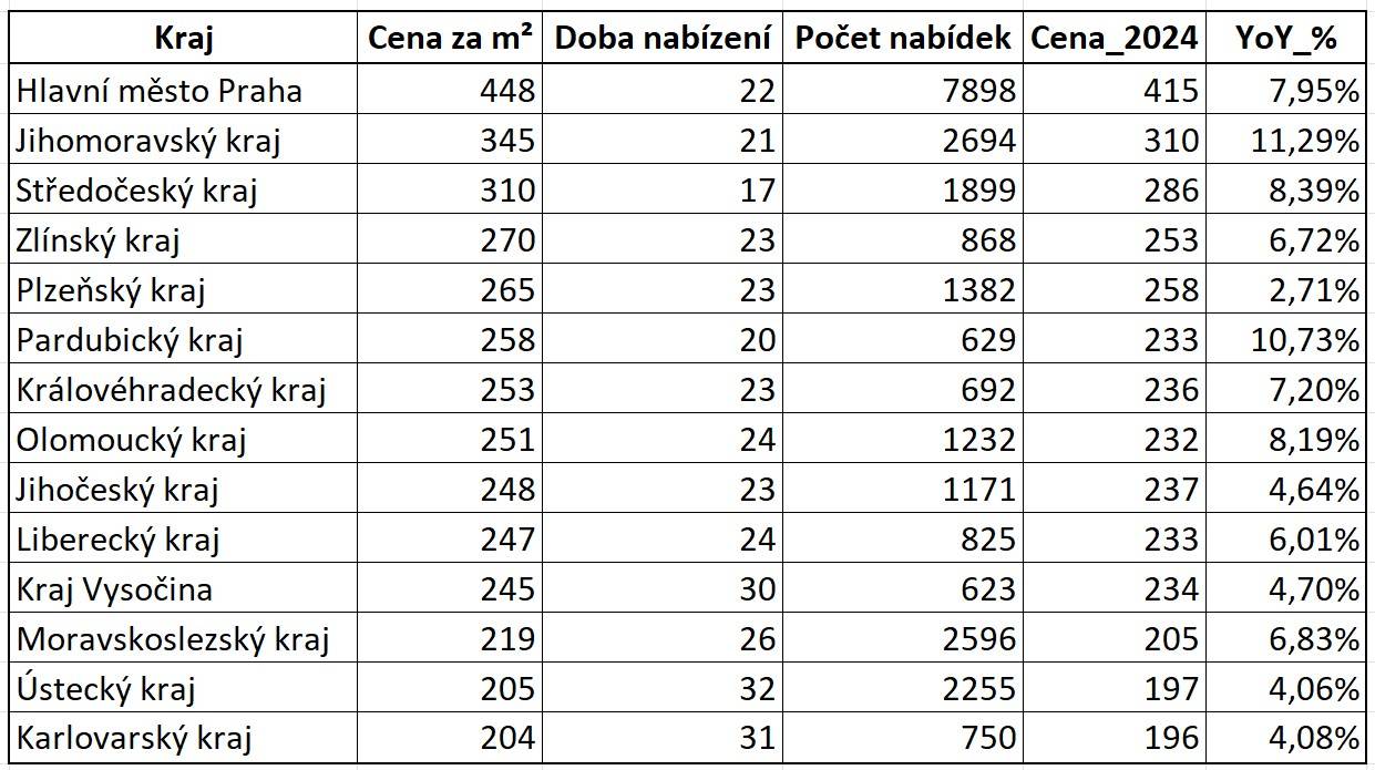 Plzeňský kraj – 265 Kč/m², 1 382 nabídek, 23 dní