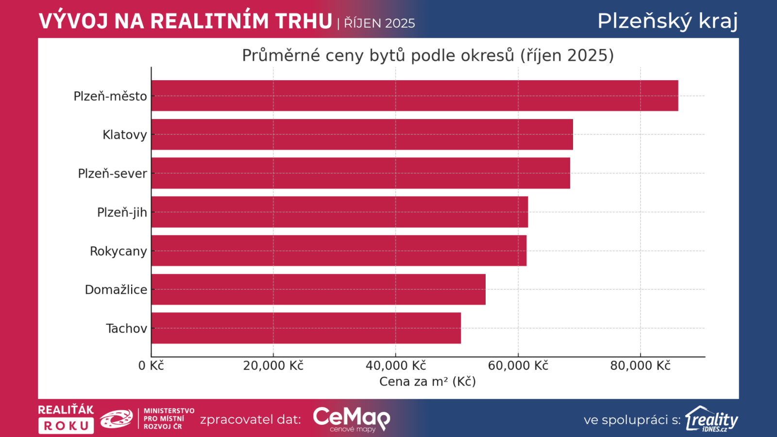 Plzeňský kraj dlouhodobě patří mezi nejzajímavější regiony realitního trhu v České republice. Metropole Plzeň zůstává centrálním motorem celého kraje a vytváří tlak na okolní okresy, které těží z poptávky po dostupnějším bydlení.