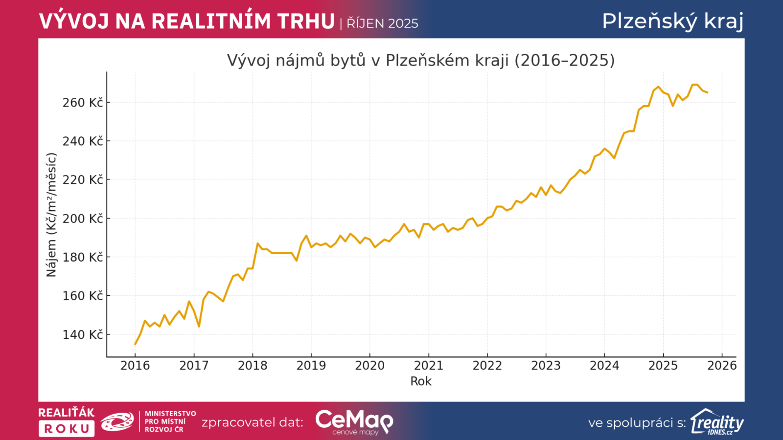 „Plzeňský kraj se v posledních dvou letech stal učebnicovým příkladem toho, jak vývoj cen kopíruje ekonomickou aktivitu. Ceny bydlení rostou nejvíc tam, kde je blízkost k pracovním příležitostem a kvalitní dopravní napojení – tedy v okresech přiléhajících k Plzni a podél D5 směrem na Prahu.“