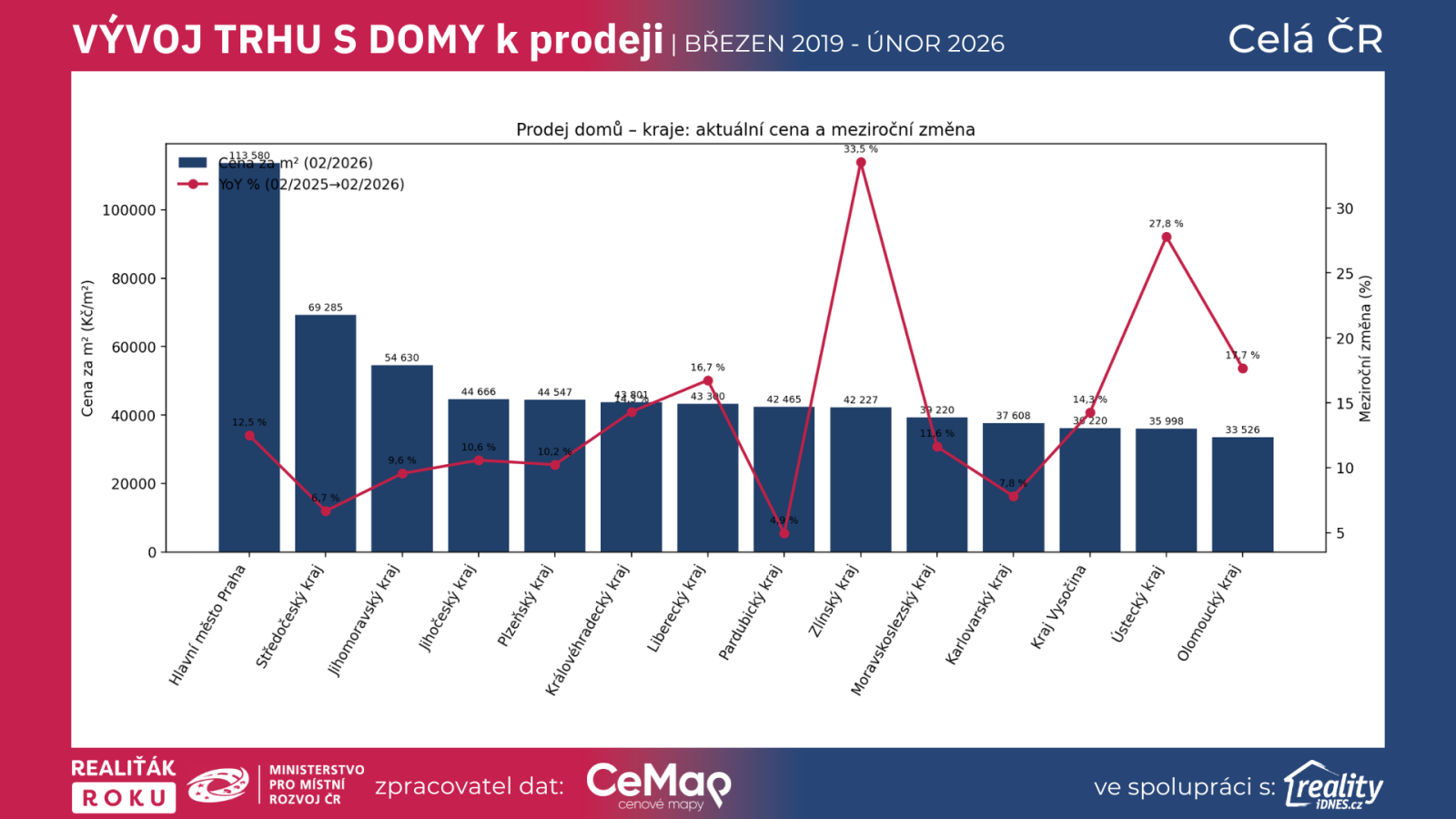 Zlínský kraj +33,52 % (02/2026: 42 227 Kč/m²)