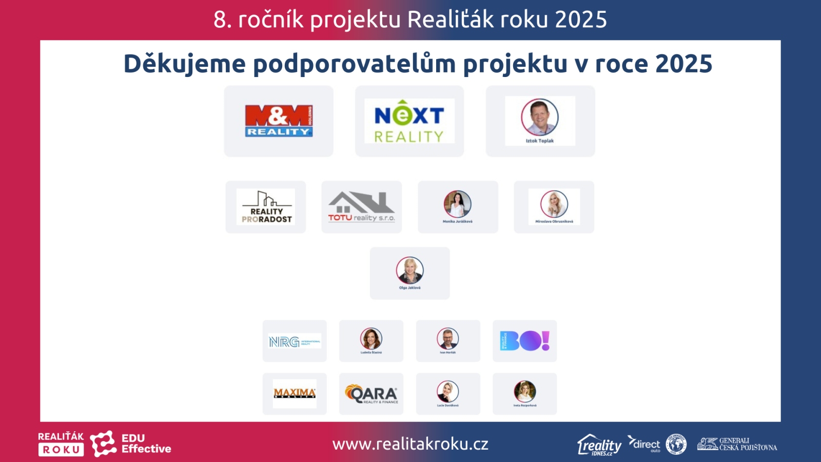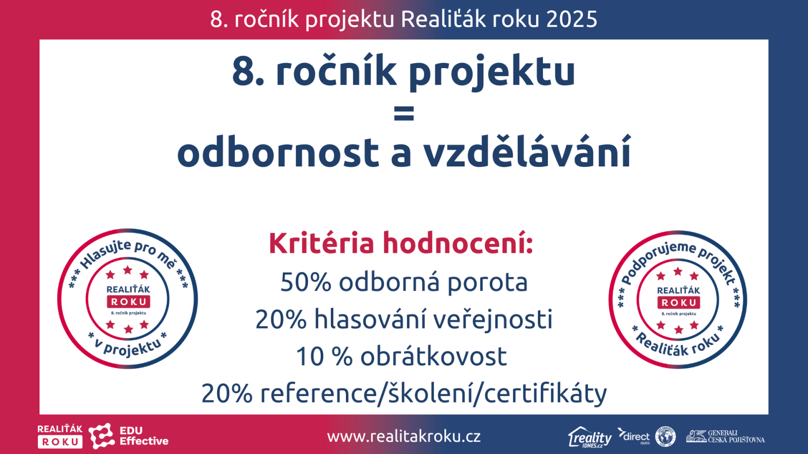 Osmý ročník projektu tak uzavřel celoroční hodnocení, které kombinuje více pilířů – od odborného posouzení a ověřování praxe až po zpětnou vazbu veřejnosti. Cíl zůstává dlouhodobě stejný: zvyšovat standardy realitních služeb a pomoci lidem vybrat si prověřeného makléře i kancelář, kterým mohou při zásadních životních rozhodnutích důvěřovat.
