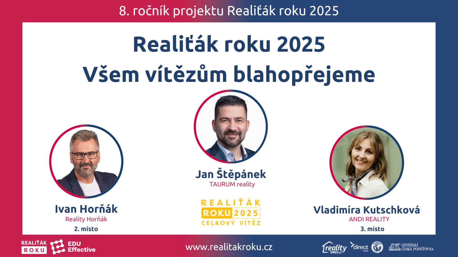 V hlavní celostátní kategorii projektu Realiťák roku 2025 si nejlépe vedli tito makléři:
