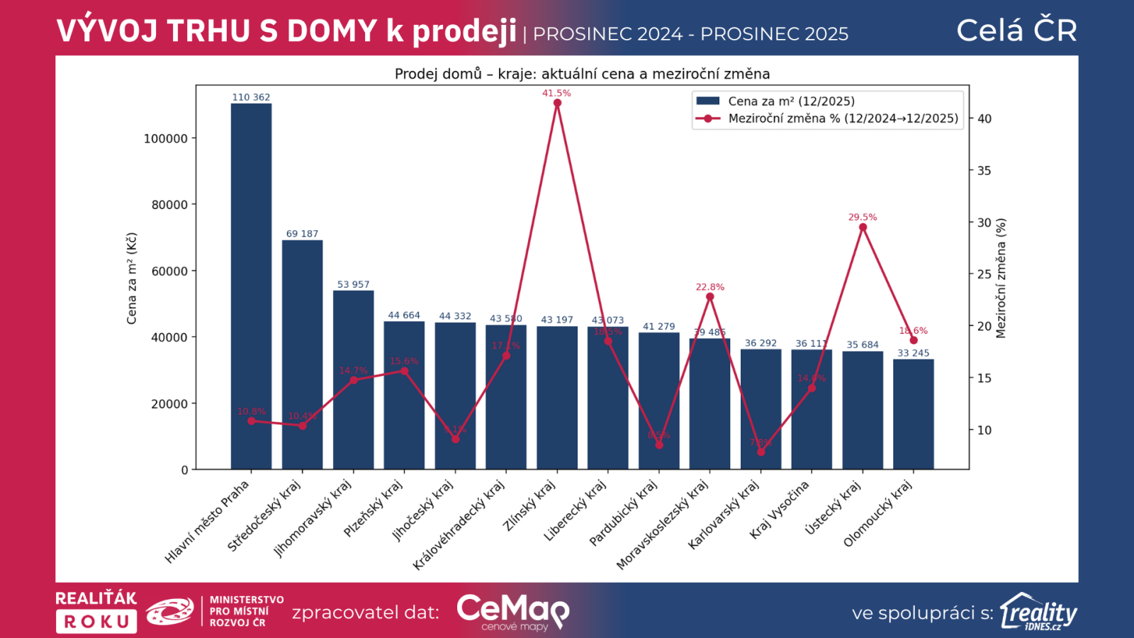 Zlínský kraj: +41,47 % (12/2025: 43 197 Kč/m²)