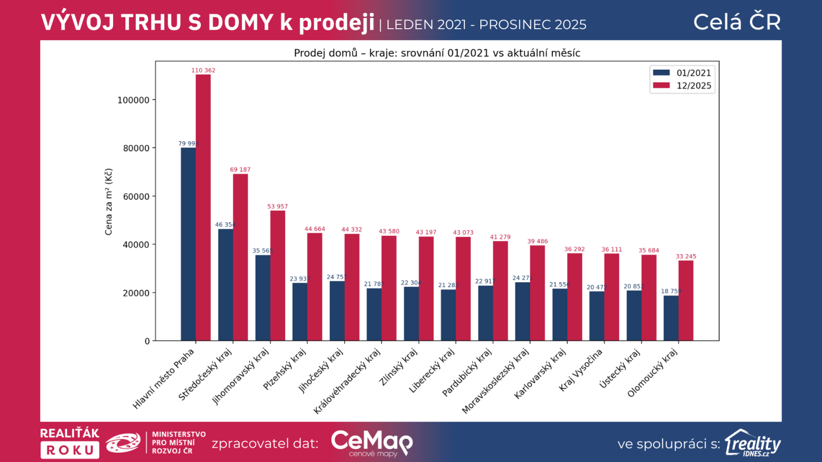 Grafy a data jsou ověřené exkluzivní data projektu Realiťák roku ve spolupráci CEMAP - cenové mapy a portálu Reality.iDNES.cz spolu s Ministerstvem pro místní rozvoj