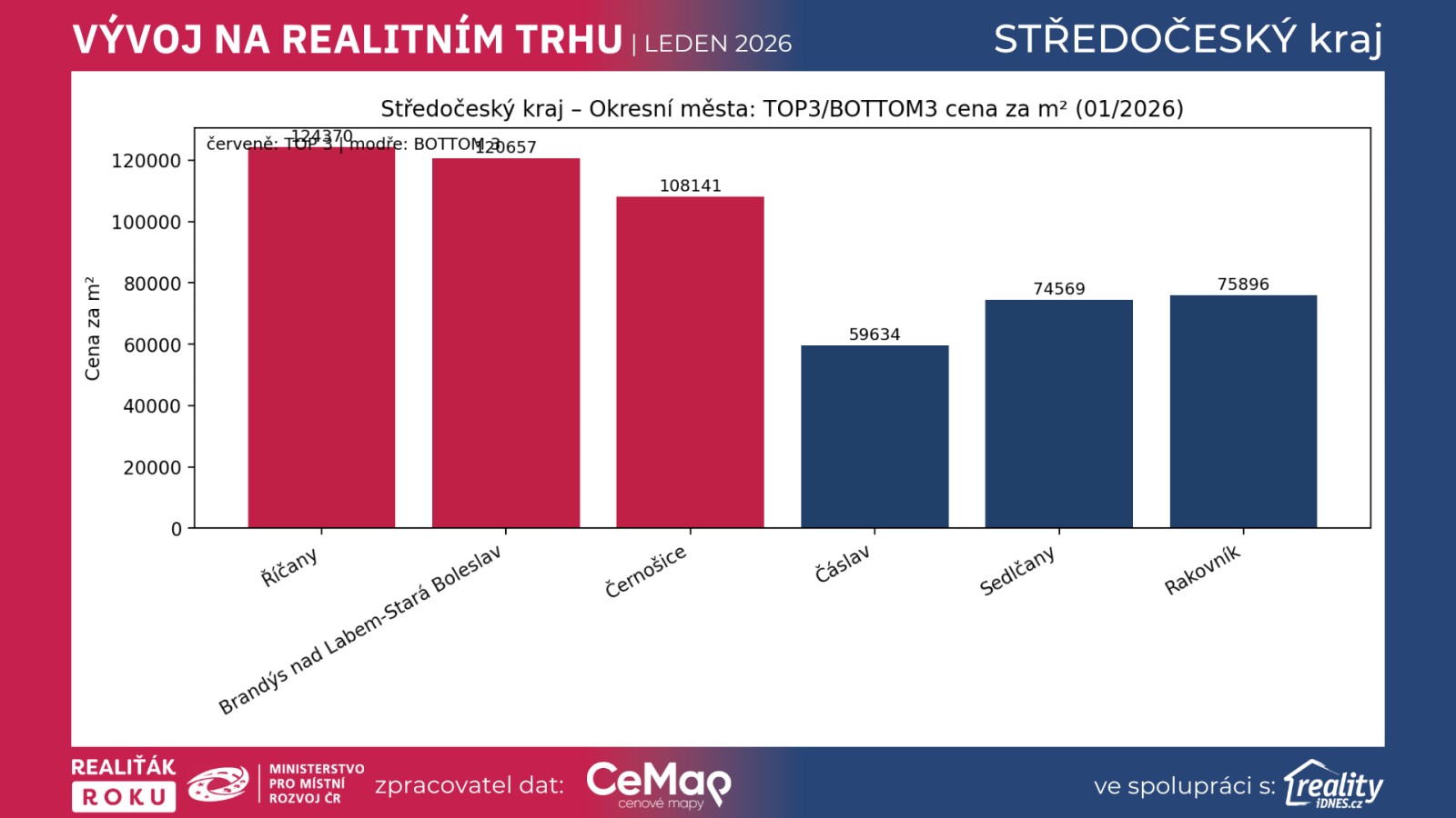 Středočeský kraj je navíc specifický „přeléváním“ poptávky mezi Prahou a zázemím. To, co se na papíře tváří jako jeden kraj, jsou ve skutečnosti desítky mikrotrhů: pražský prstenec, dojezdové lokality s železnicí, města navázaná na dálnice, ale také oblasti, kde rozhoduje lokální zaměstnavatel nebo školství. Proto je krajský průměr jen startovní bod. Skutečná realita je vidět v okresních městech: rozdíl mezi Říčany a Čáslaví v ceně za m² je natolik velký, že se bez lokálního srovnání nedá dělat kvalitní cenová argumentace. A to platí i pro komunikaci s veřejností: lidé často chtějí jednoduchou odpověď „roste/klesá“, ale odborně správná odpověď zní „záleží kde – a jak rychle se prodává“.
