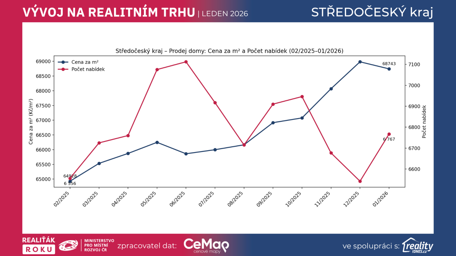 Zajímavé je i to, že u domů neroste nabídka dramaticky – Počet nabídek je spíš stabilní, ale trh se přesto zrychluje. To může naznačovat, že se mění skladba kupujících: část domácností přechází z bytů do domů (potřeba prostoru, práce z domova, rodina), část kupujících se posouvá do příměstských lokalit, kde je dům stále „reálnější“ než v Praze. Středočeský kraj má v tomto obrovskou výhodu: širokou škálu lokalit od „pražského prstence“ po vzdálenější okresy. Výsledkem je, že poptávka se nerozkládá rovnoměrně – a právě proto je pro domy klíčová lokální práce s cenou, srovnání a argumentace.
