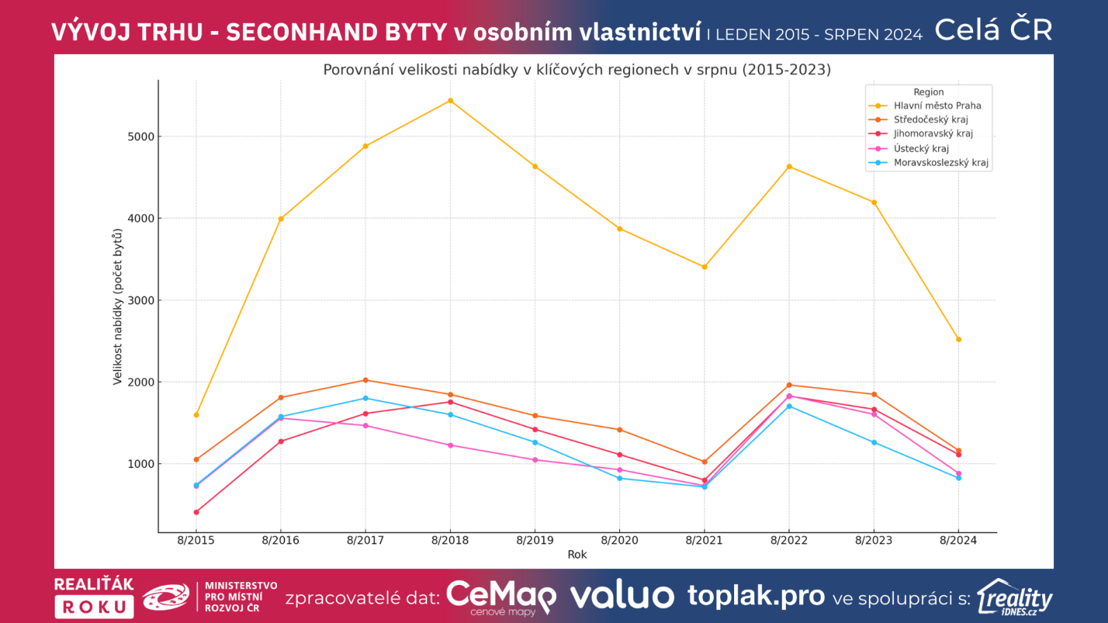 Regiony jako Moravskoslezský a Vysočina mají stále relativně stabilní nabídku bytů na trhu, což se odráží v nižším růstu cen. V těchto regionech je trh s byty v osobním vlastnictví méně dynamický, což vytváří specifické podmínky pro kupující, kteří mohou těžit z nižší konkurence a dostupnějších cen. Tento stav je však zároveň méně atraktivní pro investory, kteří hledají rychlejší zhodnocení svých prostředků.