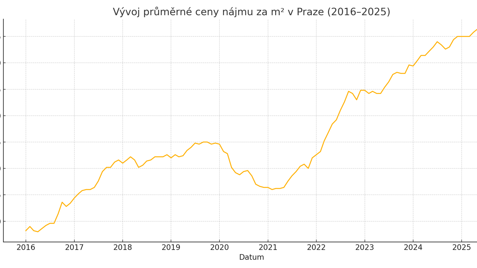 | 2021 (pandemické minimum) | ~290 Kč/m² |