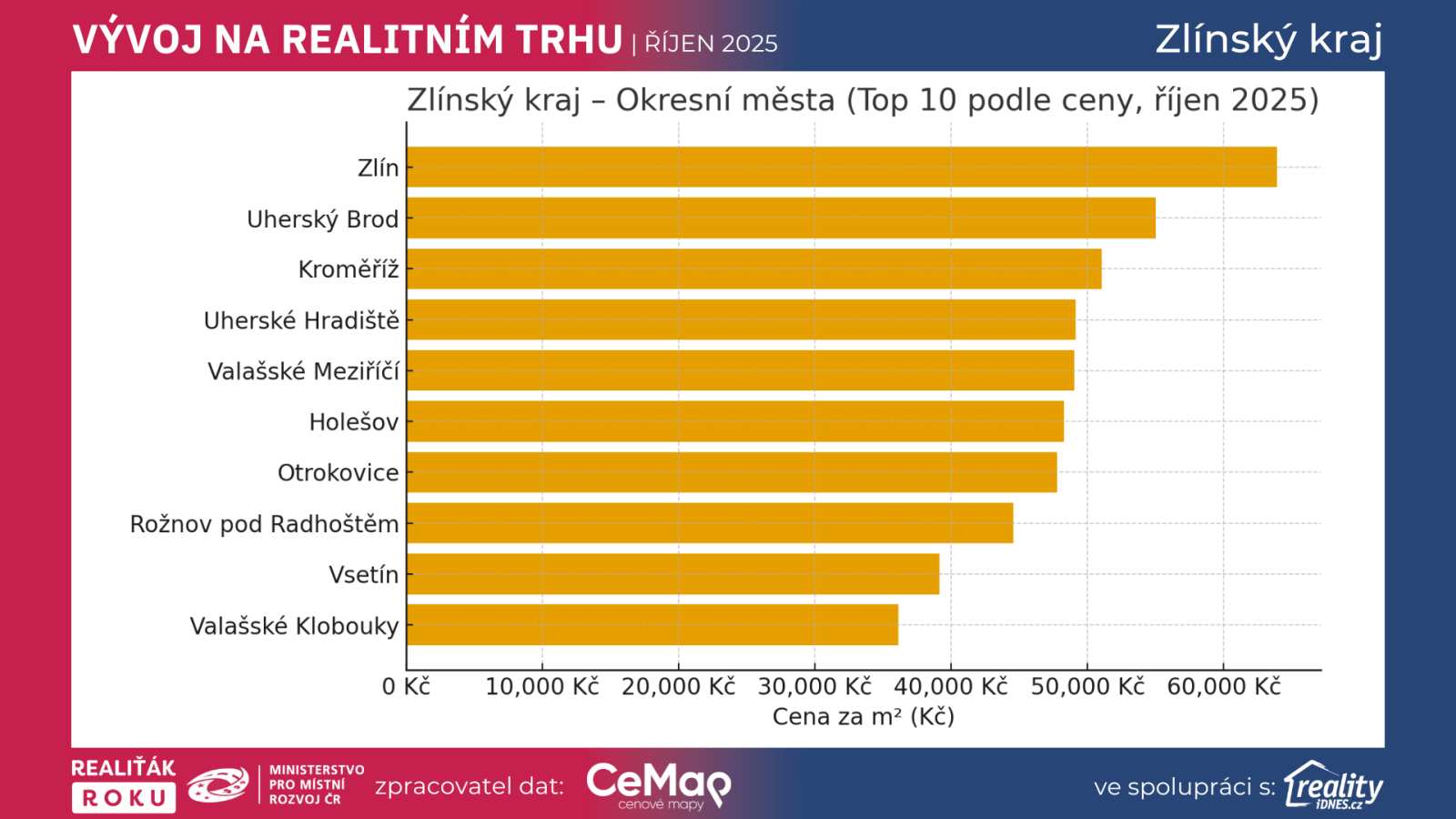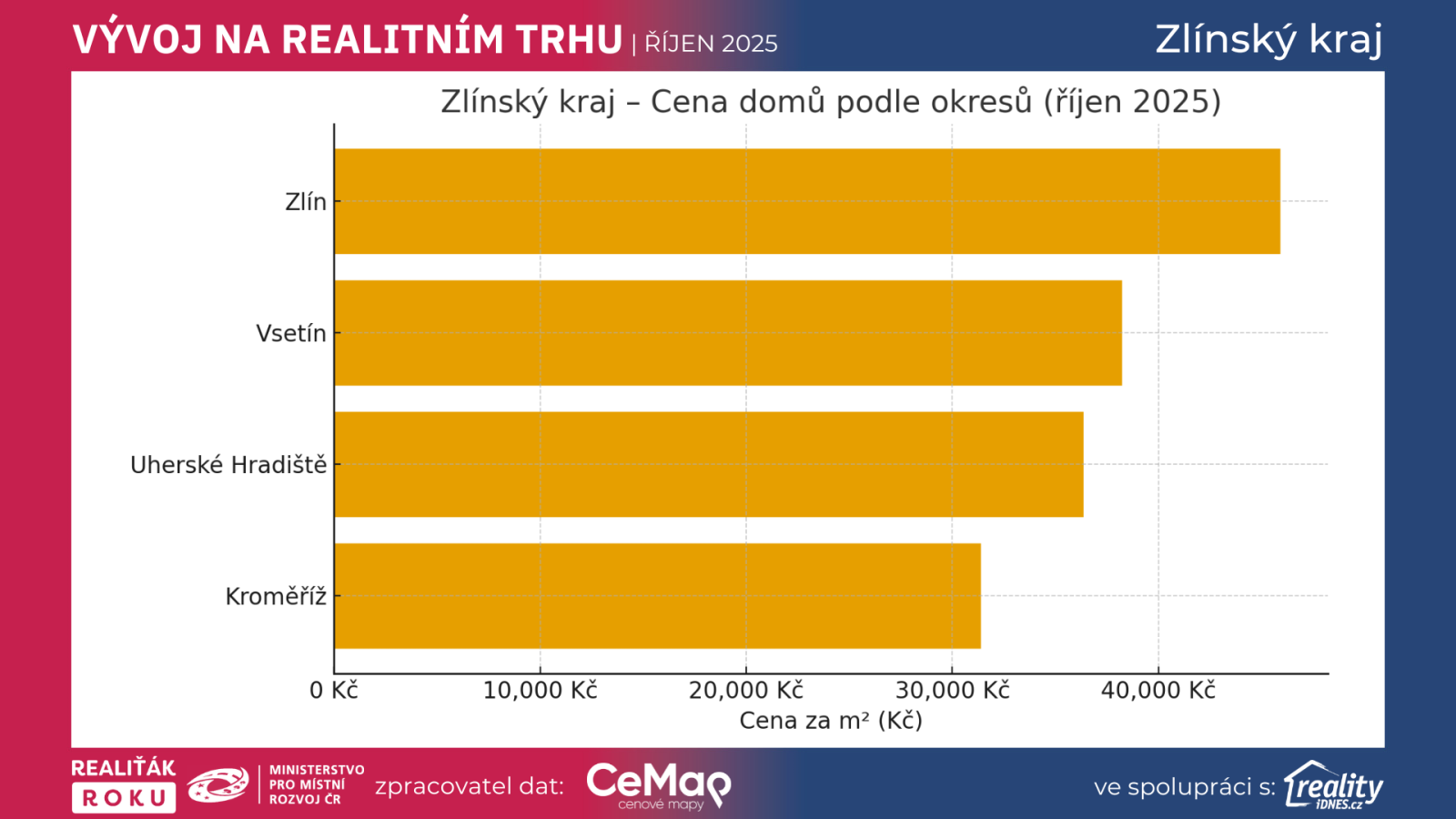 Tahounem je okres Zlín a velmi rychlé Vsetínsko, přičemž Uherskohradišťsko i Kroměřížsko drží tempo díky kvalitnějším nabídkám a lepší dostupnosti financování.