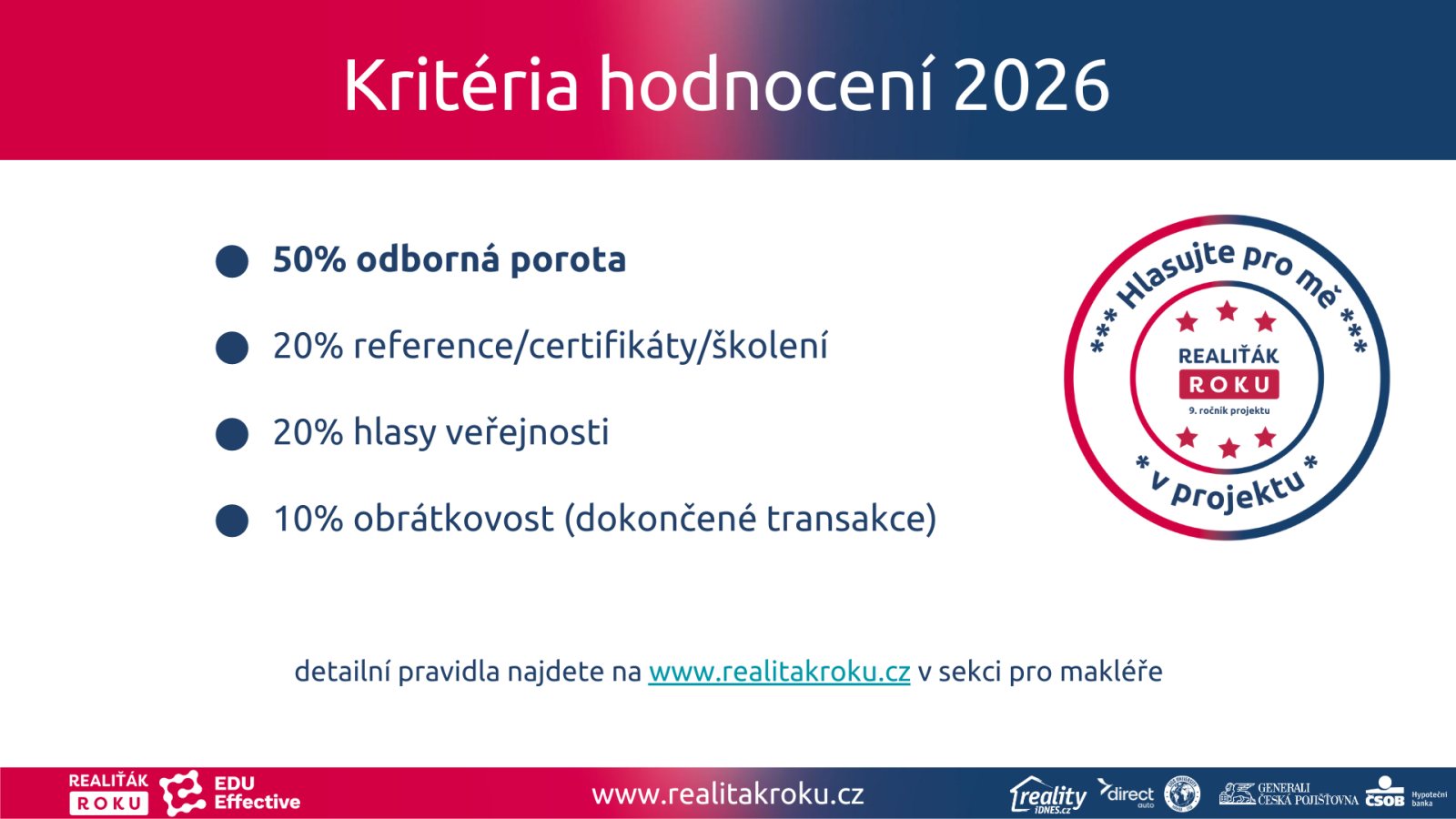 Oceňte jeho kvalitní práci a dejte mu svůj hlas již v 9.ročníku projektu Realiťák roku. I díky vašemu hlasu může získat titul Realiťák roku 2026.