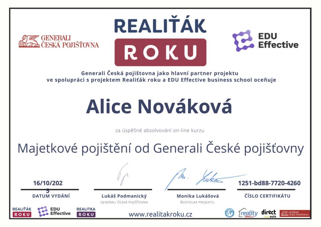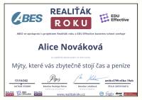 Spolupráce s Mgr. Alicí Novákovou byla na velmi dobré úrovni, příjemná a profesionální.