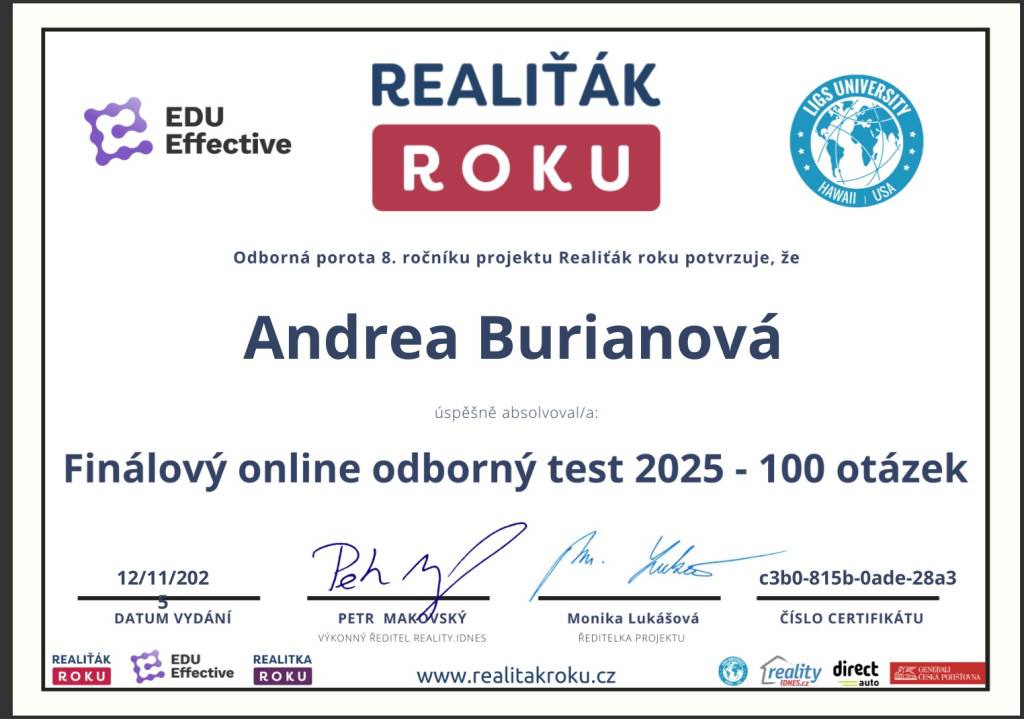 Pracuji jako realitní makléřka ve Zlínském kraji. Působím ve Zlíně, Kroměříži, Holešově, Bystřici pod Hostýnem a Vsetíně. Při své práci si zakládám na profesionalitě, spolehlivosti, empatii a vzájemné důvěře. Ke každému klientovi přistupuji individuálně a s maximální péčí. Mým cílem je být v procesu prodeje či koupě nemovitosti Vaší oporou, rádcem a průvodcem, aby celý obchod proběhl v pořádku a bez komplikací. Ráda i Vám pomůžu najít nový domov nebo prodat nemovitost za nejlepší možnou cenu.