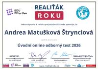 ráda bych touto cestou ještě jednou poděkovala za výborné služby Vaší realitní makléřky Andrey Matuškové. Spolupráce při prodeji mého bytu byla vynikající: velká profesionalita a velmi milé vystupování během celé doby prodeje. Vše pro mě připraveno "NA KLÍČ" (všechny papíry, věděla jsem přesně, co bude následovat, co mám udělat já a co kupující, smlouvy s právníkem i následná doporučení, co je třeba ještě udělat). Také jsem chtěla zdůraznit velmi dobrou prezentaci mého byt...
