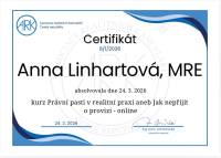Paní Linhartová je velice ochotná. Vše měla připravené a zajištěné. Zařídila vklad na katastru nemovitostí. Zařídila také přepis majitele v realitní kanceláři, která spravuje danou nemovitost.. Prostě kompletní a profesionální služby.