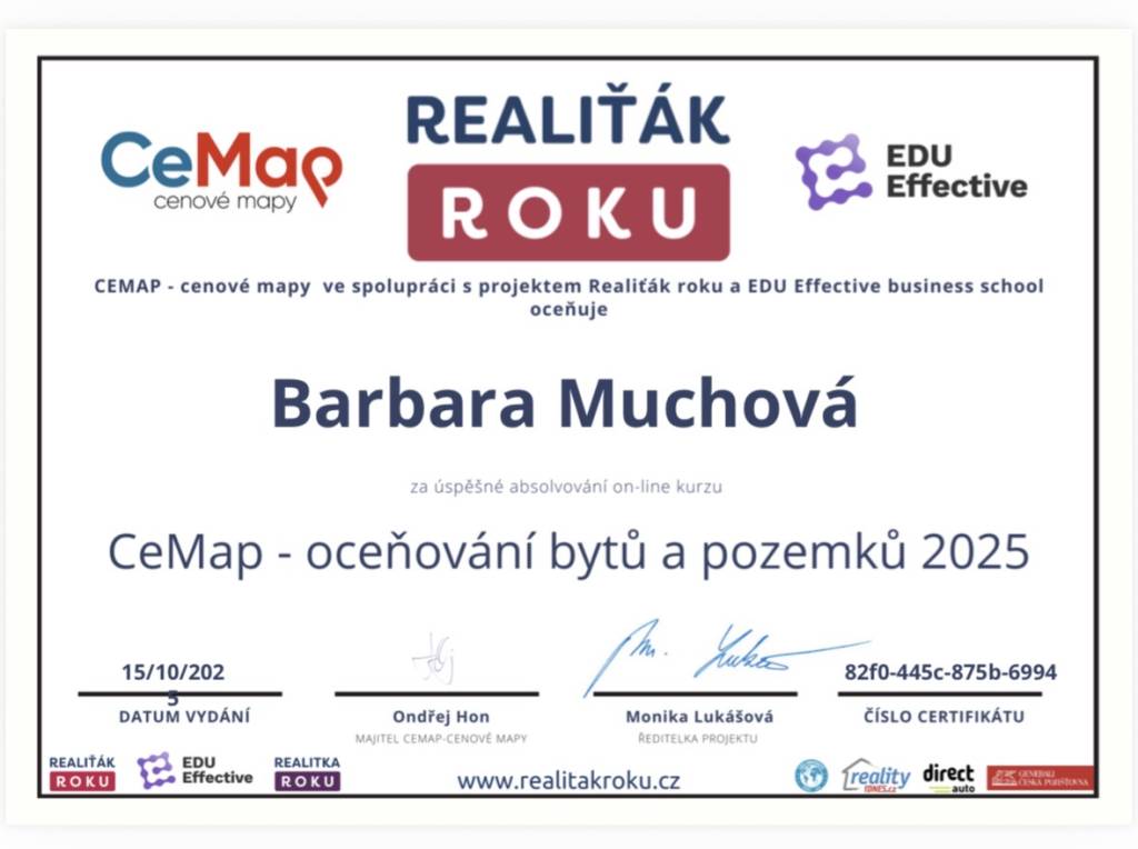 Realitám se věnuji od roku 2011. Mým cílem je zrealizovat prodej nebo pronájem nemovitosti co nejrychleji a za co nejvýhodnější možnou cenu. Zajistím Vám klidné spaní, jelikož veškeré finanční transakce realizuji přes notářskou nebo advokátní úschovu. Pracuji jako realitní specialista na osobní doporučení.