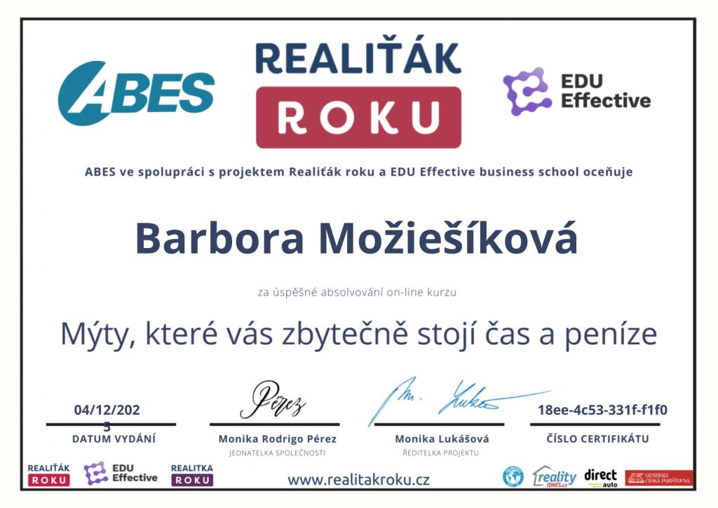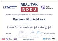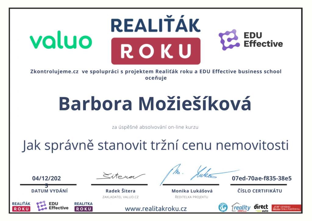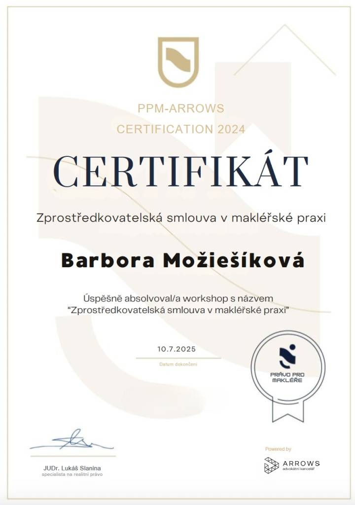 "Chtěl bych velice poděkovat paní makléřce Barboře Možiešíkové, za spolupráci při prodeji mé nemovitosti. Od první schůzky, nacenění, inzerce, prohlídky, až po předání. Vše na profesionální úrovni. Milá vstřícná, snažila se vyjít vstříc a o všem informovat. Při příštím prodeji, nebo koupi, se určitě na paní Možiešíkovou obrátím."