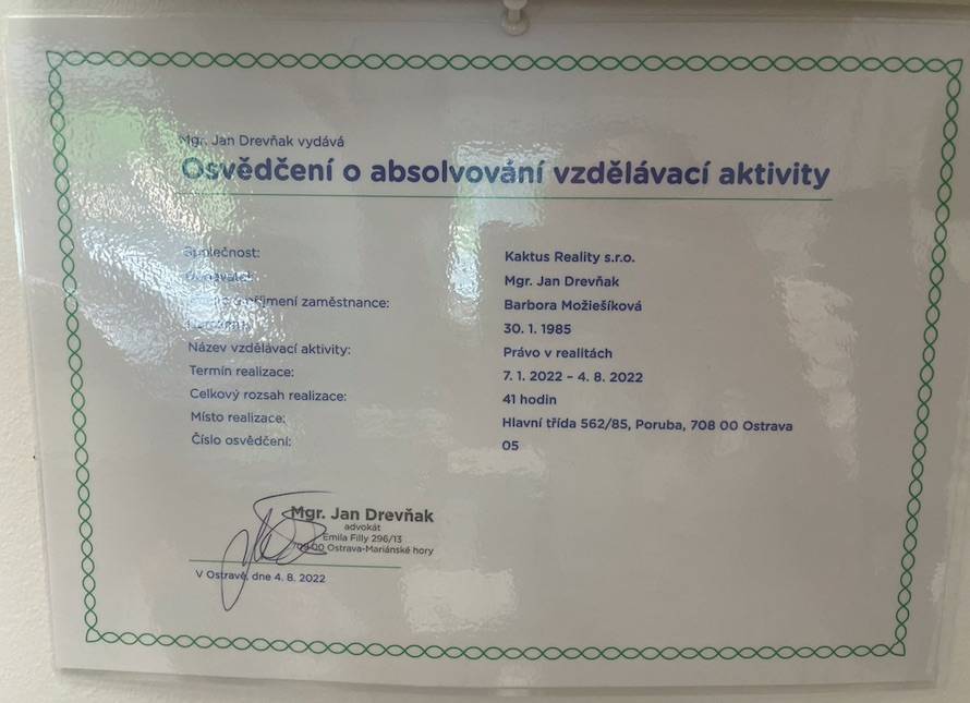 Ze zdravotních důvodu jsem musel přistoupit k prodeji srdeční záležitosti chaty ve Vyšních Lhotách. Protože se člověk k takovému rozhodnutí nedostane každý den nebo vůbec, tak jsem s nejistotou a nevědomosti vstoupil do pobočky realitní kanceláře KAKTUS v Ostravě Porubě. Byl jsem osloven příjemnou a sympatickou makléřkou Barborou Možiešíkovou, která se od počátku našeho jednání naplno a s plnou profesionalitou mému problému věnovala a který jsme do zdárného konce prodeje dopracovali.