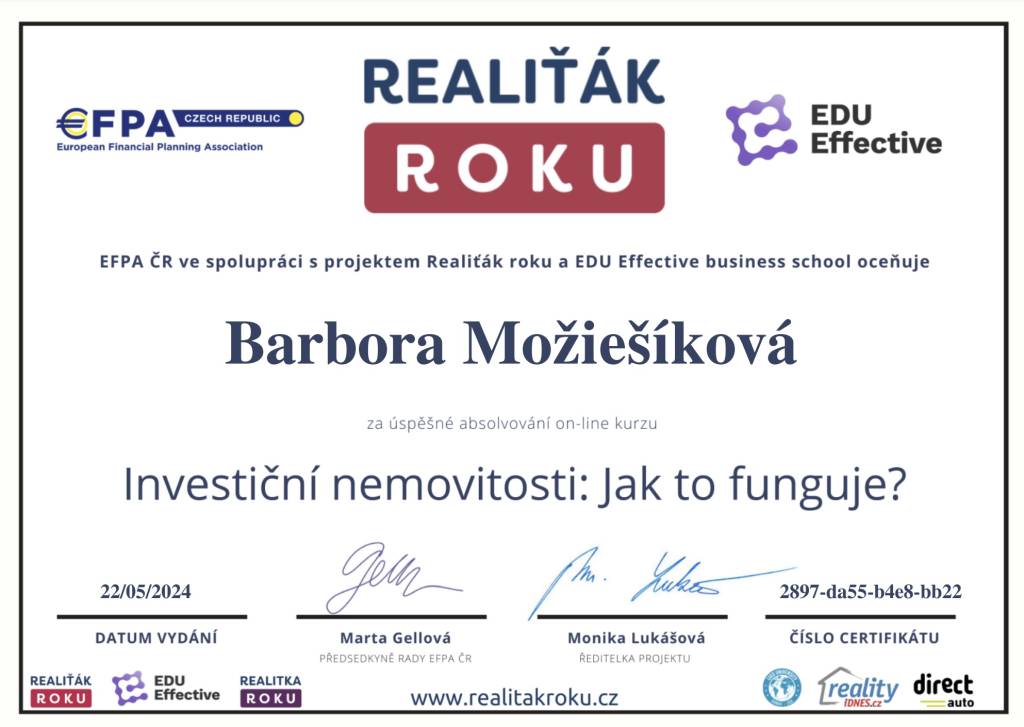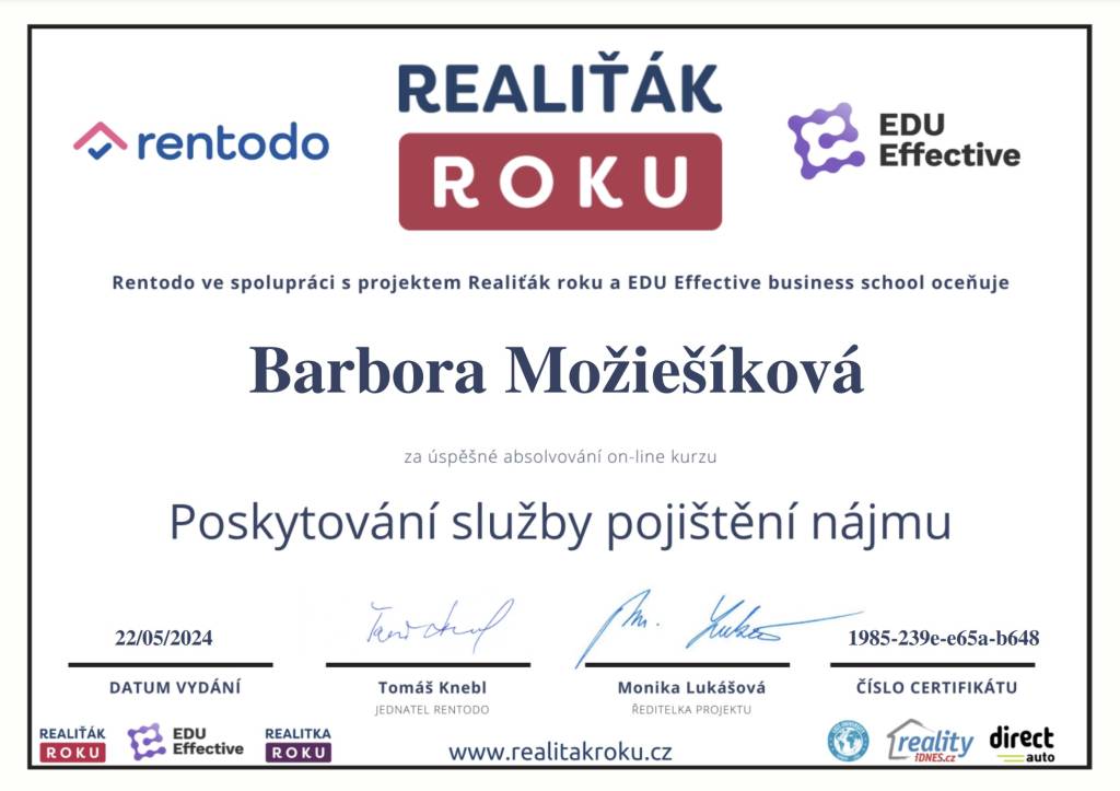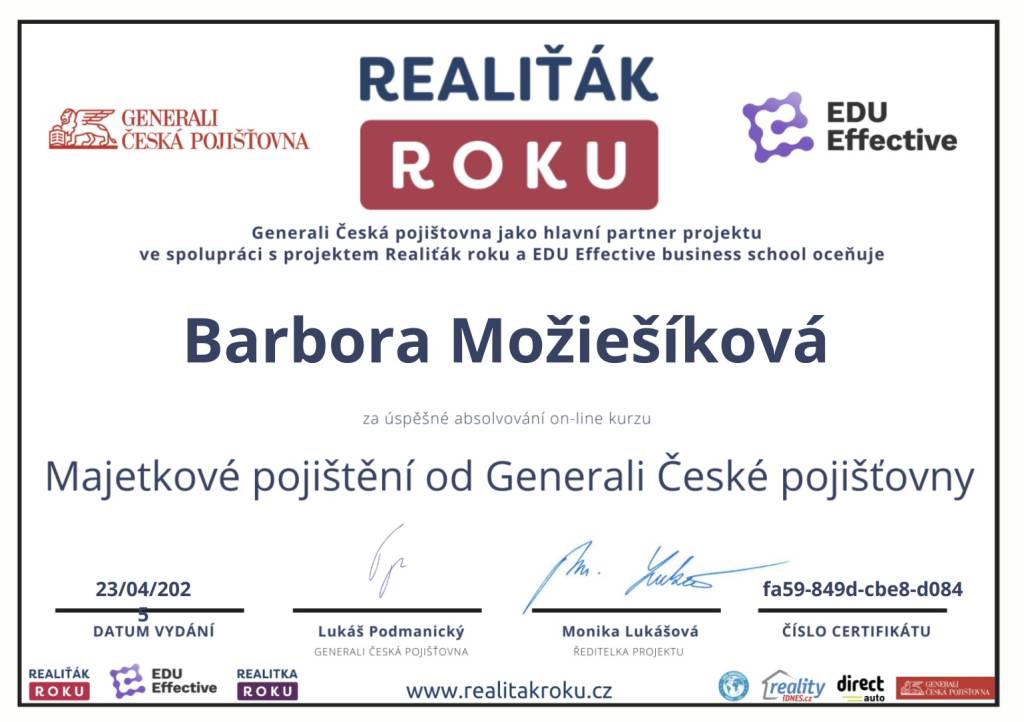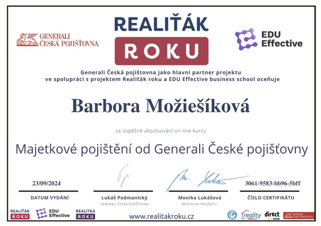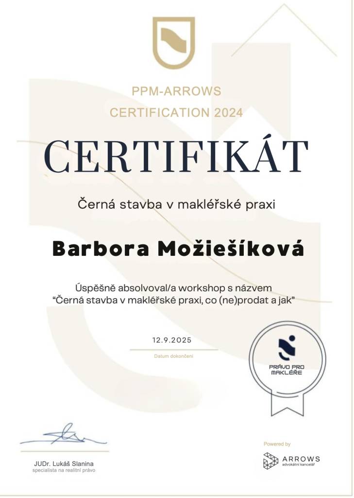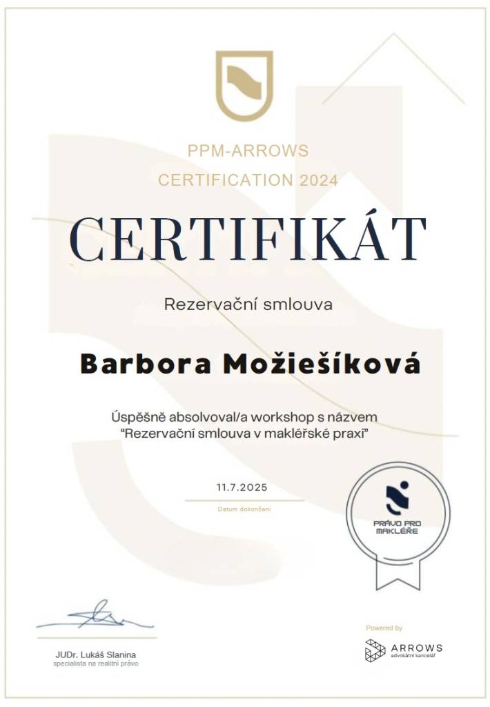 Po vlastní zkušenosti mohu doporučit makléřku Barboru Možiešíkovou, která byla schopna i v době své dovolené řešit a dokončit koupi mé nemovitosti.