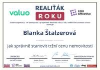 chtěla bych vyjádřit uznání paní makléřce Blance Štalzerové, která pro nás ve velmi krátkém čase a s naprosto hladkým průběhem zrealizovala nákup i prodej nemovitostí. Máte ve svém týmu odborníka, který vaší realitní kancelář skvěle reprezentuje. Děkujeme.