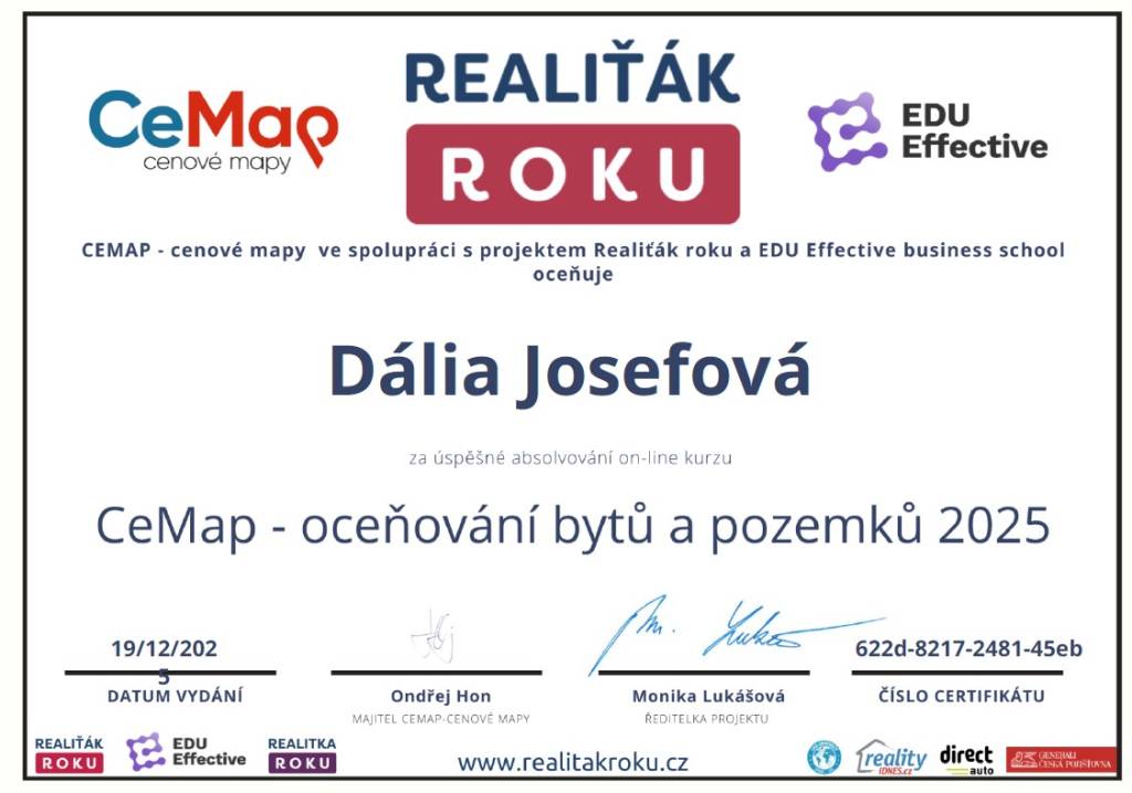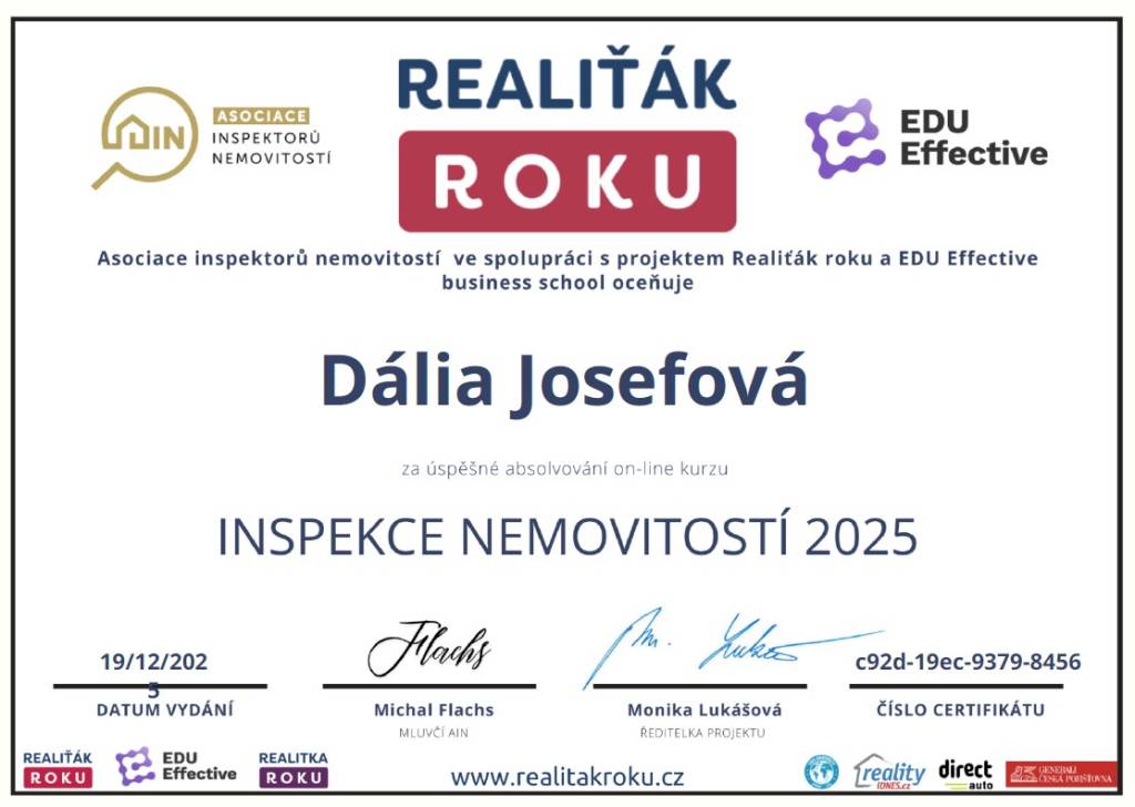 Ráda bych poděkovala paní Dálii Josefové a taky asistentce paní Veronice Čuprové za velmi dobrou spolupráci při prodeji mého rodinného domu v Hrubé Vrbce. Vše probíhalo bez problémů, velmi profesionálně a zároveň s maximálním lidským přístupem. Paní Dália Josefová je nejen výborná makléřka, ale také člověk, který rád se vším poradí a je vždy ochotná naslouchat. Oceňuji pěknou prezentaci domu, pohotovou komunikaci, vyřízení všech formalit i ochotu nad rámec běžné práce. Její asistentka byla vždy velmi vstřícná a ochotná – skvělý tým, na který jsem se mohla ve všem spolehnout.