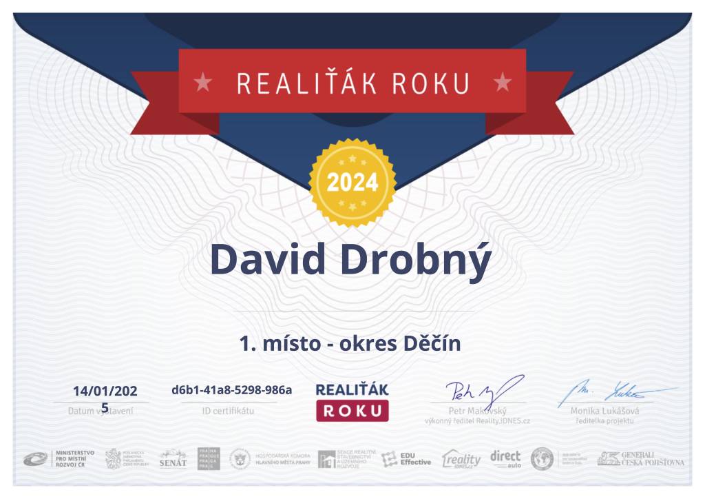 od roku 2011 se zabývám zprostředkováním prodejů a pronájmů nemovitostí v lokalitách Děčín, Ústí nad Labem a Teplice. Do současnosti jsem zrealizoval přes 150 prodejů a 300 pronájmů nemovitostí. Důvěru mezi mnou a klientem považuji za jednu z nejdůležitějších hodnot. Vybudování důvěry je ale dlouhodobý proces, kdy hlavním atributem je poctivost a vstřícnost. Dovolte mi přesvědčit Vás o tom, že se na mě můžete kdykoliv spolehnout.