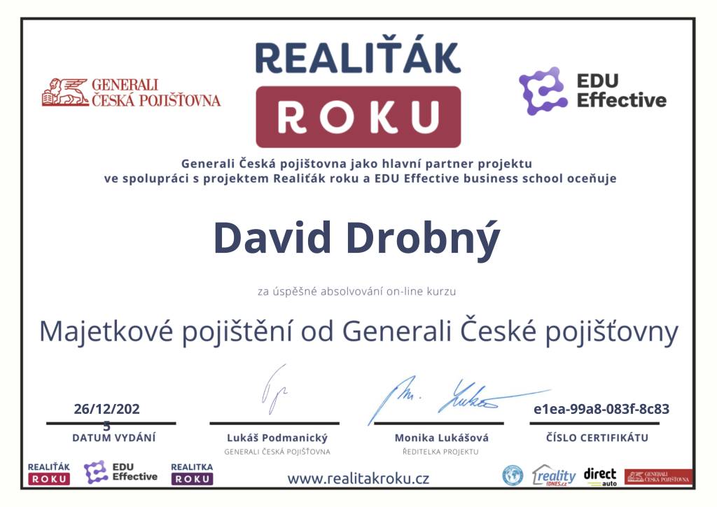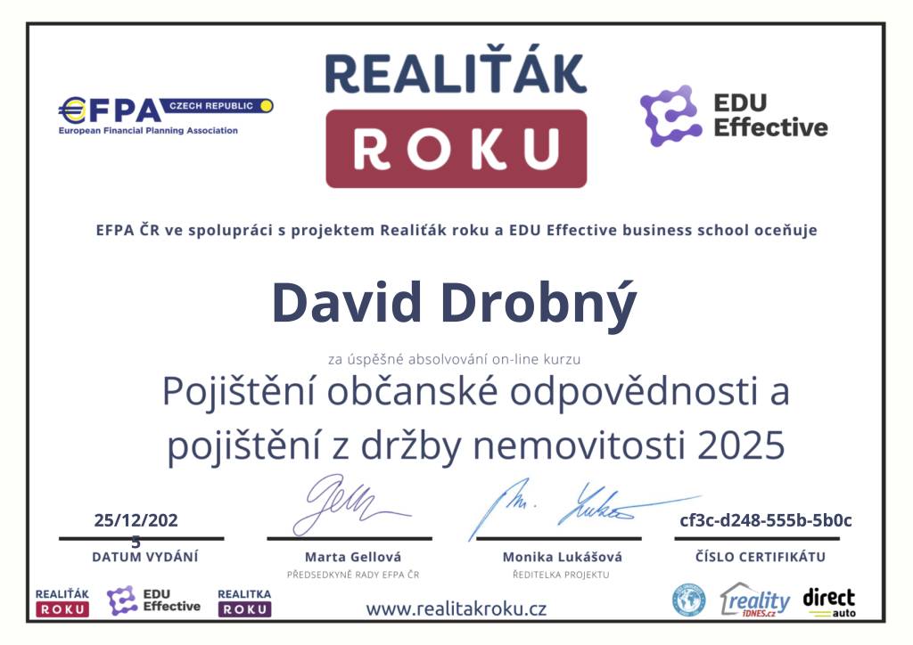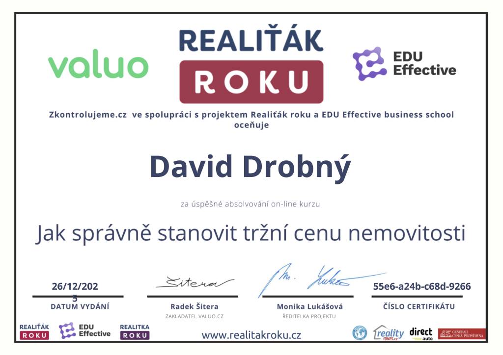 S panem inženýrem Drobným mám výbornou zkušenost. Působí velmi profesionálně, spolehlivě a lidsky. Oceňuji rychlé jednání a výbornou orientaci na trhu. Celý proces proběhl bez komplikací a s maximální péčí. Nejvíce si vážím jeho lidského přístupu. Díky panu Drobnému dopadlo vše lépe, než jsem vůbec čekala, a z celého procesu jsem měla dobrý pocit. Určitě doporučuji všem, kdo chtějí spolupracovat s někým, kdo je nejen profesionál, ale i skvělý člověk.