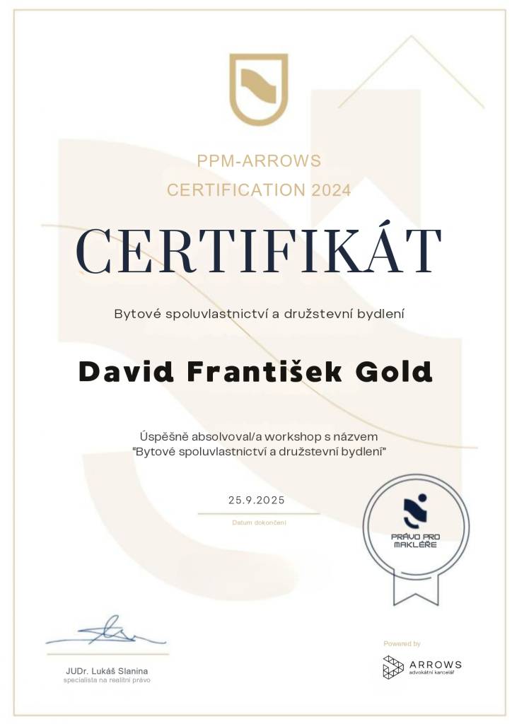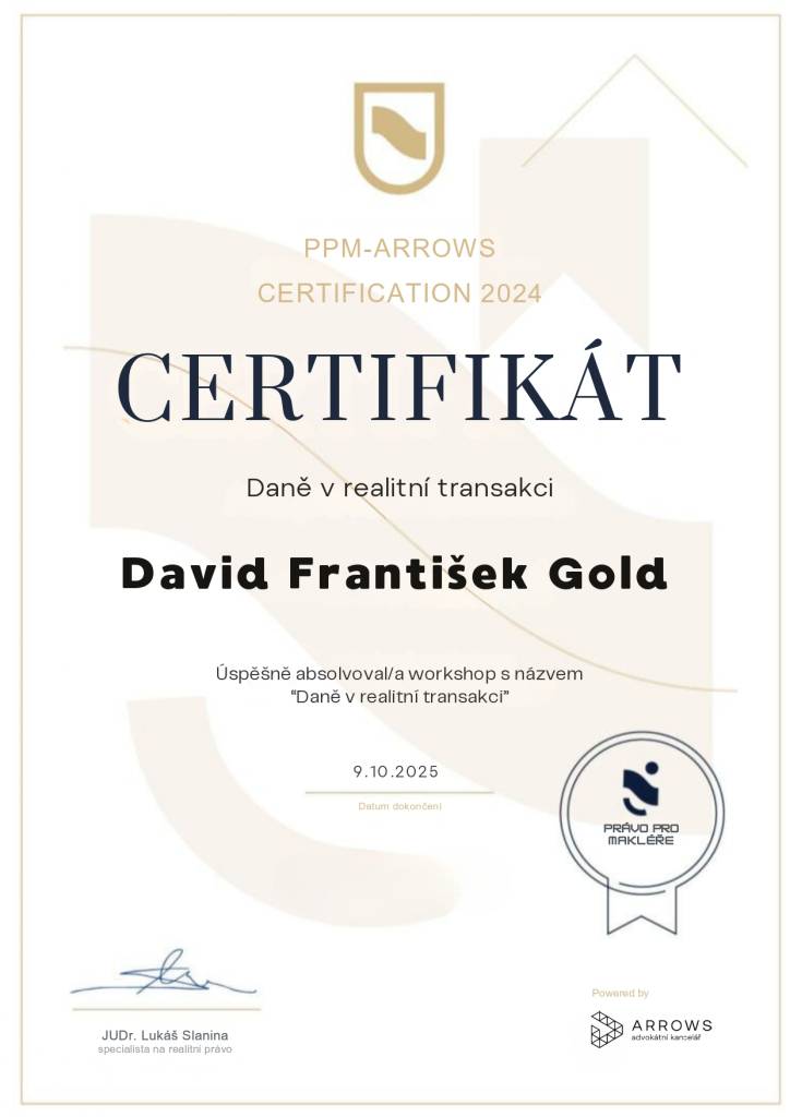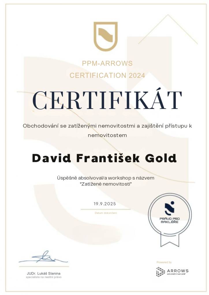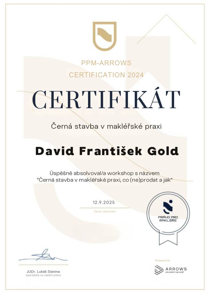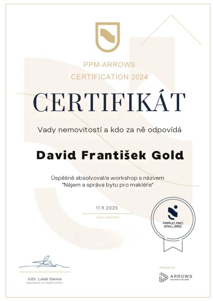 Z mé zkušenosti, kterou nyní mám, se opětovně i v budoucnu s důvěrou obrátím na pana Golda a doporučím ho i dalším klientům, kteří budou mít zájem o zastupování své osoby při koupi, prodeji či pronájmu nemovitosti.