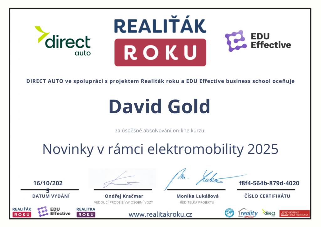S panem Davidem Goldem máme velmi pozitivní zkušenost. Jedná vždy profesionálně, férově a s velkou ochotou poradit. Oceňujeme jeho spolehlivost, vstřícnou komunikaci a lidský přístup. Věříme, že naše spolupráce bude pokračovat stejně kvalitně i nadále.