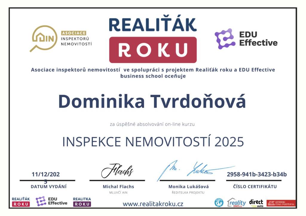 Jmenuji se Dominika Tvrdoňová a působím jako realitní makléřka ve Zlínském kraji. Do světa realit jsem vstoupila s jediným cílem. Pomáhat lidem najít místo, kde se opravdu budou cítit jako doma. Naladím se na potřeby klientů a najdu řešení, které dává smysl nejen po stránce finanční ale i osobní. Klientům nabízím nejen kvalitní servis, ale i osobní přístup založený na důvěře, empatii a férovosti. Moji prioritou je, aby se každý cítil jistě a měl po boku makléřku, na kterou se může spolehnout.