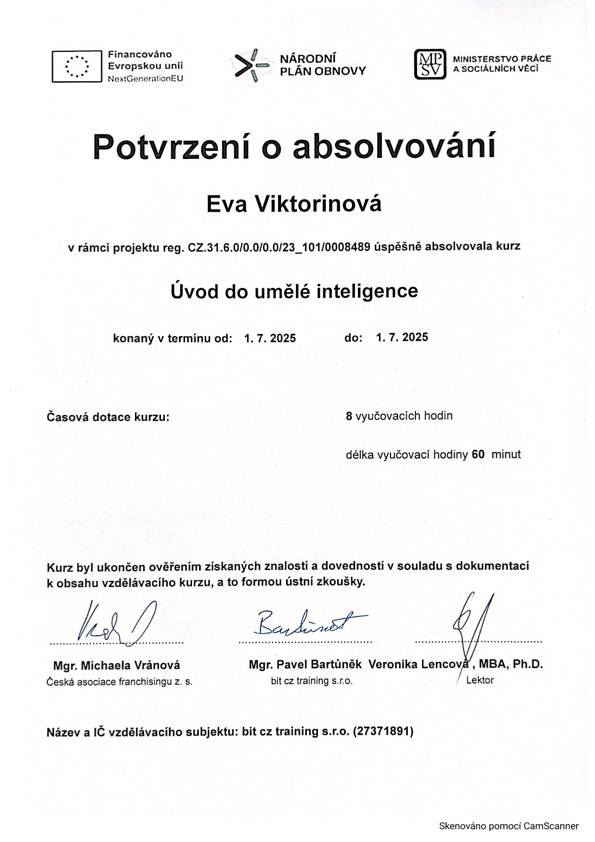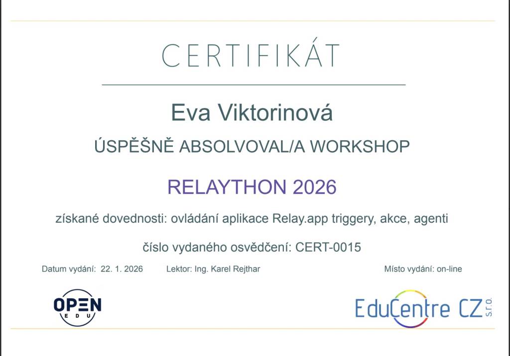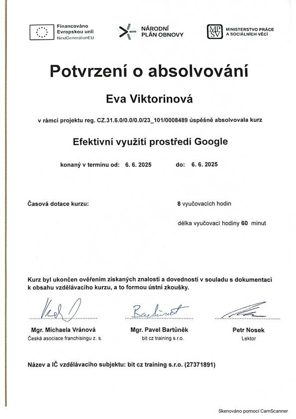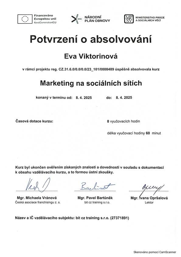 Veškerá jednání s paní Evou Viktorínovou byla na vysoké úrovni. Jsou to profesionálové. ❤️ Děkuji za milý přístup.