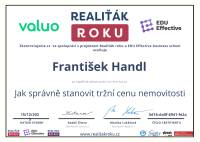 Chtěla bych velmi ocenit práci pana Handla z Olomoucké pobočky, který nám pomohl s prodejem domu. Byl vždy spolehlivý, při vystupování vždy profesionální, usměvavý. Měl to s námi složitější, ale byl velmi trpělivý a snažil se vždy pomoci a to i nad rámec svých povinností, v každé fázi procesu se pro nás snažil najít vždy to nejlepší řešení. Zajistil s námi komplexní proces prodeje od focení nemovitosti, inzerci, prohlídky, financování, právní služby, až po připsání peněz za prodej domu na náš účet a finální zápis v katastru nemovitostí. Jeho služby mohu jen doporučit a v případě potřeby se na něj vždy znovu ráda obrátím. Děkuji za vše ...