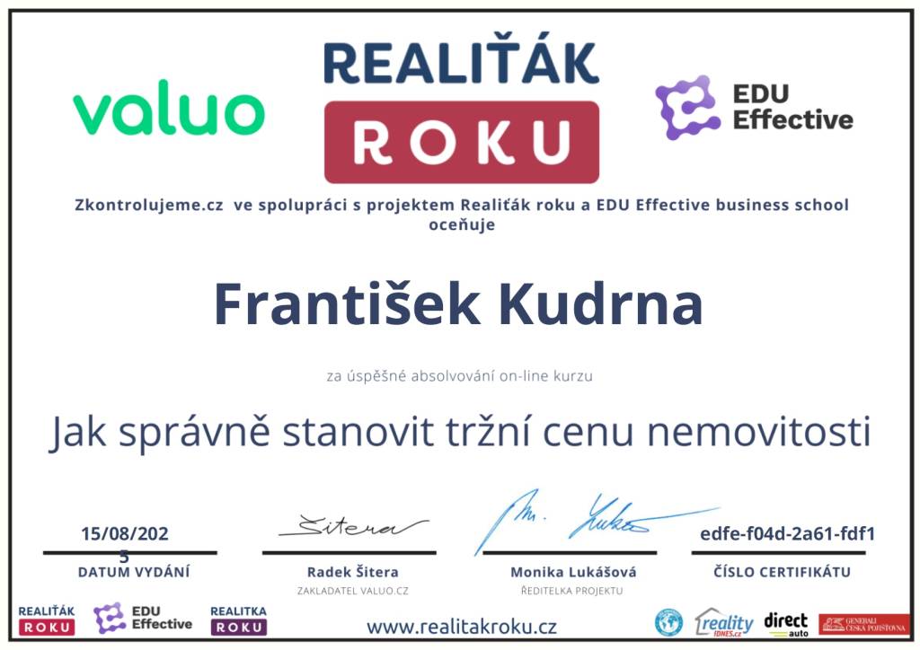 Služeb pana ing. Kudrny jsem využil při prodeji bytu a byl jsem velmi spokojen s jeho profesionalitou i lidským přístupem. Postup prodeje trpělivě vysvětlil, potom průběžně telefonicky podával informace o stavu věci a v neposlední řadě zajistil i veškerý nezbytný styk s úřady.