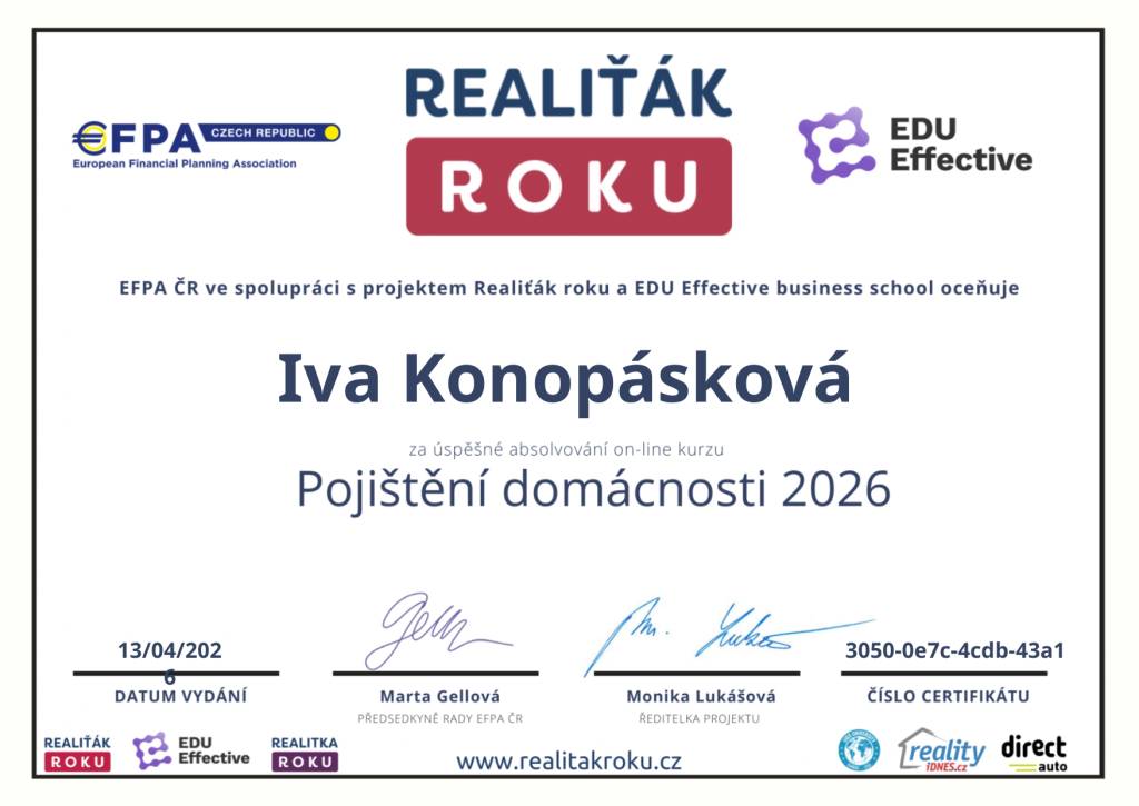 Děkuji Ivě Konopáskové za profesionální přístup a skvělou spolupráci při dalším prodeji nemovitosti. Vše proběhlo hladce, rychle a k mé plné spokojenosti.