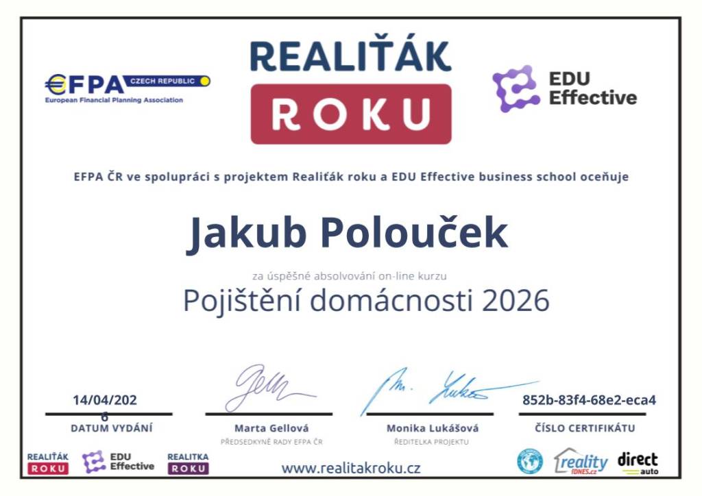 S realitním makléřem Jakubem jsem byl naprosto spokojený. Pomohl mi rychle a bez problémů najít spolehlivé nájemníky do mého bytu, a navíc ochotně vyřešil i věci, které běžně nejsou v náplni práce makléře – například montáž žaluzií. Kubu znám už dlouho jako finančního poradce a vždy jsem se na něj mohl spolehnout. Je profesionální, vstřícný a lidský. Vřele doporučuji!