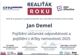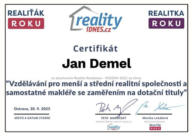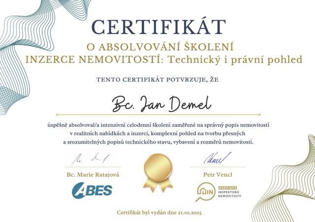 Makléře Jana Demela nemůžu hodnotit jinak než pozitivně. Oceňuji hlavně kombinaci profesionálního a lidského přístupu, která z mých předešlých zkušeností s tímto oborem není až tak častá. Zařídil vše, co byste od spolehlivého makléře očekávali, tzn. od nafocení nemovitosti, vložení inzerátu do nabídky a průběžnou aktualizaci ceny, až po komunikaci s advokátem, bytovým družstvem a přepisem energií plnou mocí na nového majitele.