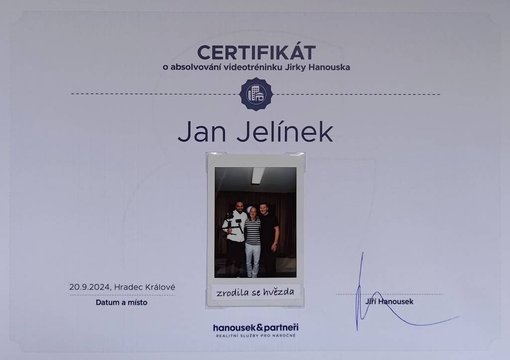 Vřele doporučuji práci ing. Honzi Jelínka. Jeho přístup byl naprosto profesionální, je velmi vstřícný a zodpovědný. Jako realitního experta všem doporučuji! Pokud budu v budoucnu potřebovat služby realitní kanceláře, ráda se na něho obrátím!