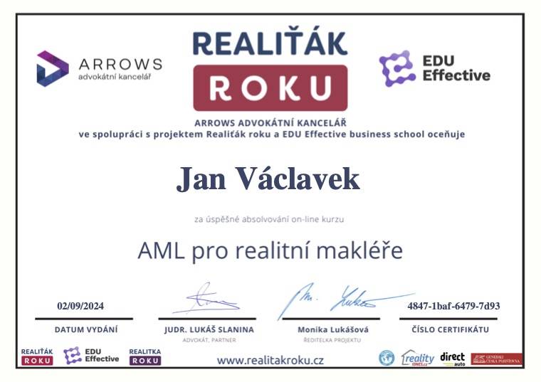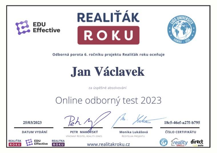 Pan Václavek je profesionál a jsem rád, že prodej našeho bytu zprostředkoval právě on. Je velmi ochotný, vstřícný a moc mu děkujeme za prodej.
