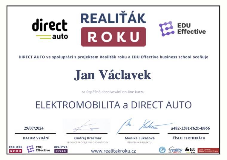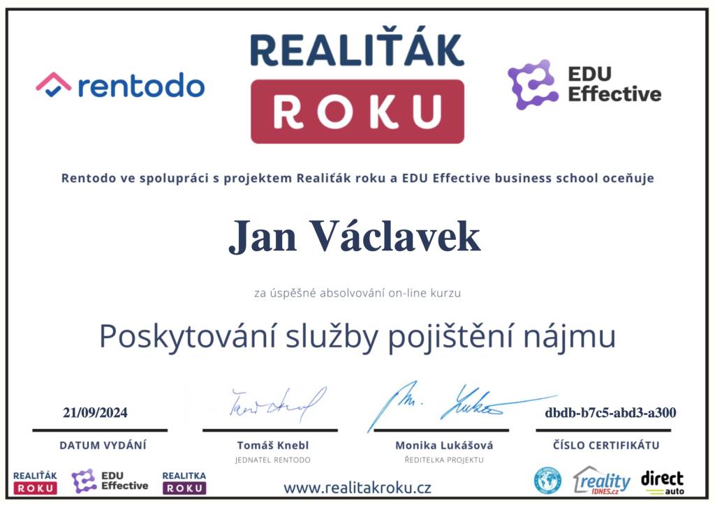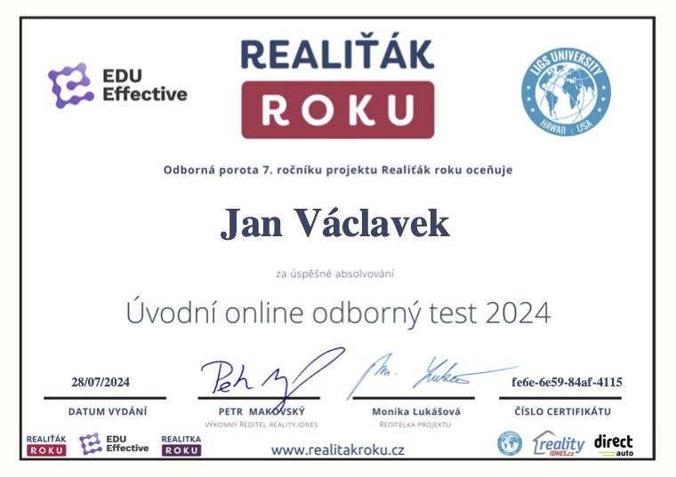Chtěla bych alespoň touto cestou poděkovat panu Janu Václavkovi za jeho profesionální a skvělý přístup. Vše ochotně zařídil, vždy s předstihem mne informoval jaký bude další postup, přizpůsobil se mému časovému rozvrhu. Vždy byl nápomocen s čímkoliv s čím jsem si nevěděla rady. Děkuji mu za jeho ochotnou a milou pomoc. Mohu jen doporučit.