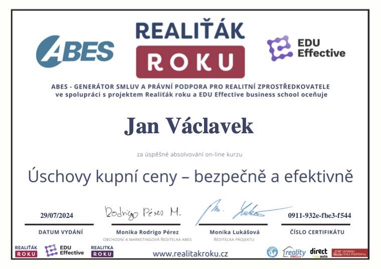 PAN VÁCLAVEK JE VELMI OCHOTNÝ VSTŘÍCNÝ MÁ VELKÉ POCHOPENÍ S PROBLÉMY DRUHÝCH ZA COŽ MU DĚKUJI....PRO PŘÍŠTÍ ORGANIZOVÁNÍ PRODEJE ČI KOUPĚ NEMOVITOSTI BYCH URČITĚ NEVOLILA NĚKOHO JINÉHO ...PŘEJI MU AT SE MU DAŘÍ V DALŠÍM RŮSTU BUDOVÁNÍ DALŠÍ KARIERY....